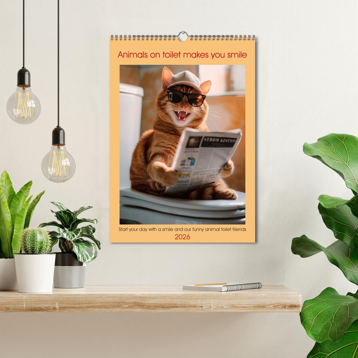 Discover the ultimate annual calendar that starts every day with a smile. Our unique 'Animals on toilet makes you smile' calendar is the perfect blend of charm and wit to brighten up your bathroom. Each month you'll be greeted by a different, delightfully humo...