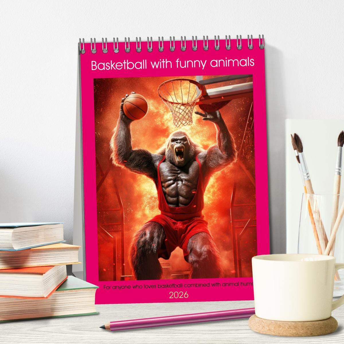 Basketball with funny animals (Desk Calendar 2026 DIN A5 portrait), CALVENDO 12 Month DeskCalendar