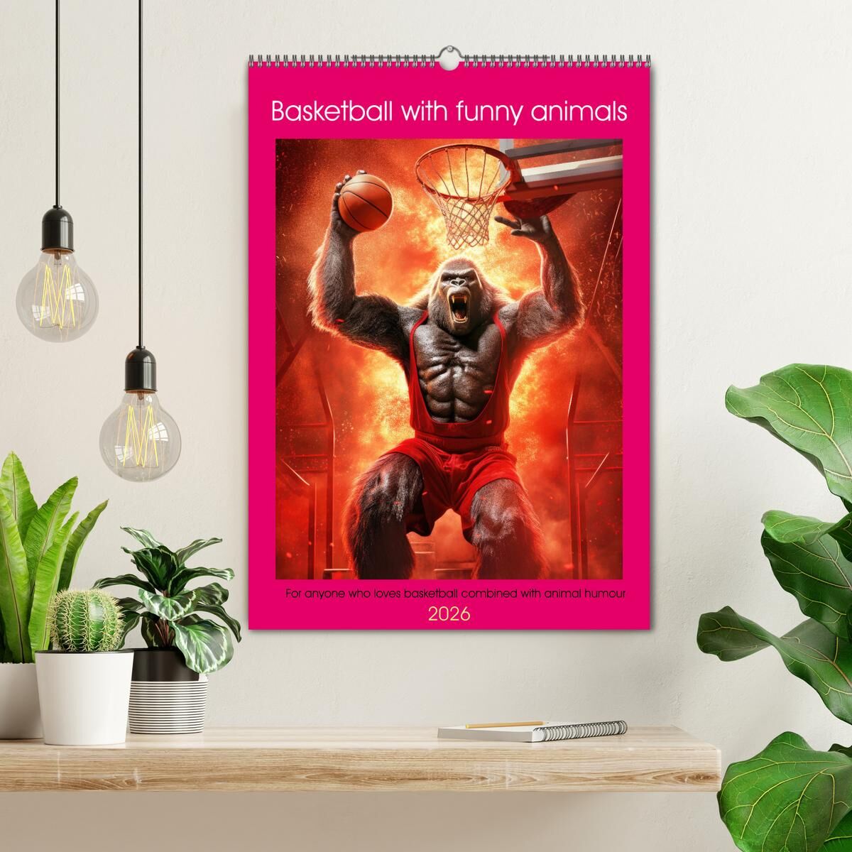 Basketball with funny animals (Wall Calendar 2026 DIN A2 portrait), CALVENDO 12 Month Wall Calendar