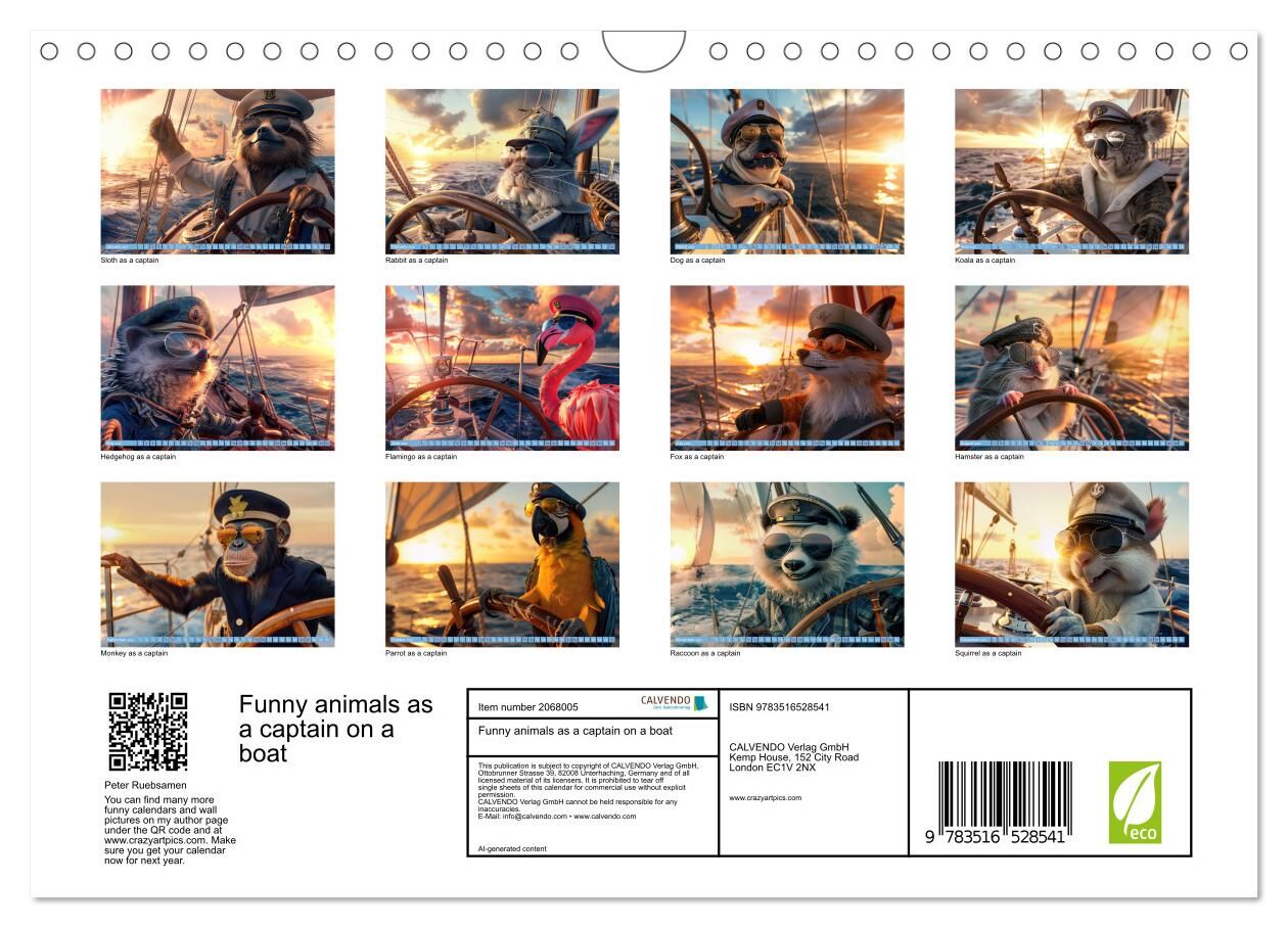Set sail for a year full of adventure with the 'Funny animals as a captain on a boat'. Immerse yourself in twelve months of charming animals taking the helm and shining as captains on the sparkling waters. This AI-generated calendar will bring a smile to your ...