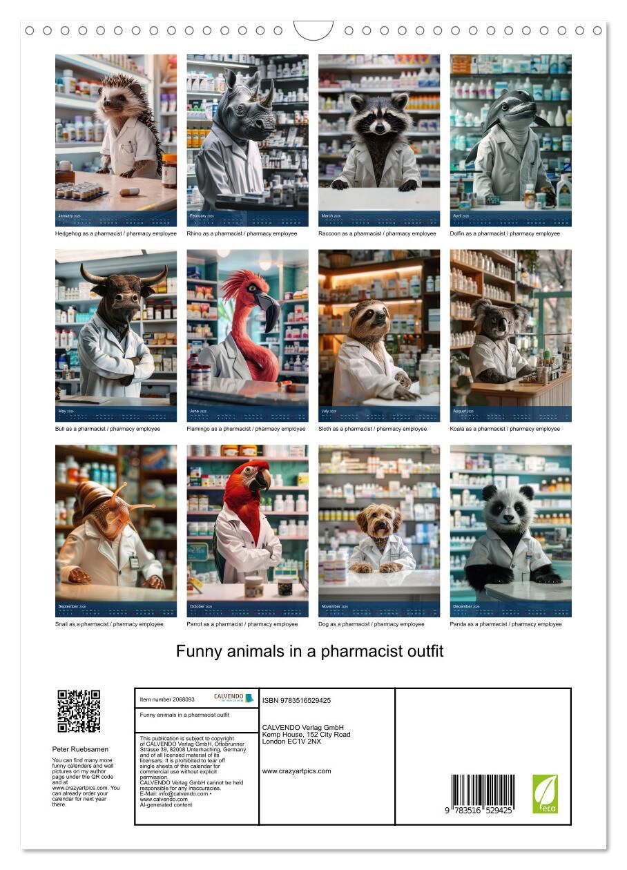 Funny animals in a pharmacist outfit (Wall Calendar 2026 DIN A3 portrait), CALVENDO 12 Month Wall Calendar