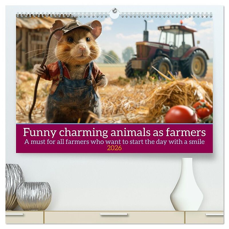 Introducing the must-have calendar for the year 'Funny Charming Animals as Farmers'. Dive into a world where humour meets the farmyard, featuring adorable animals dressed as farmers, complete with witty slogans that bring a smile to your face. Each month, unco...