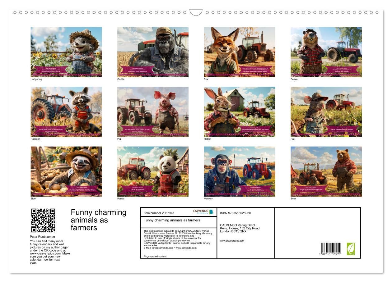 Introducing the must-have calendar for the year 'Funny Charming Animals as Farmers'. Dive into a world where humour meets the farmyard, featuring adorable animals dressed as farmers, complete with witty slogans that bring a smile to your face. Each month, unco...
