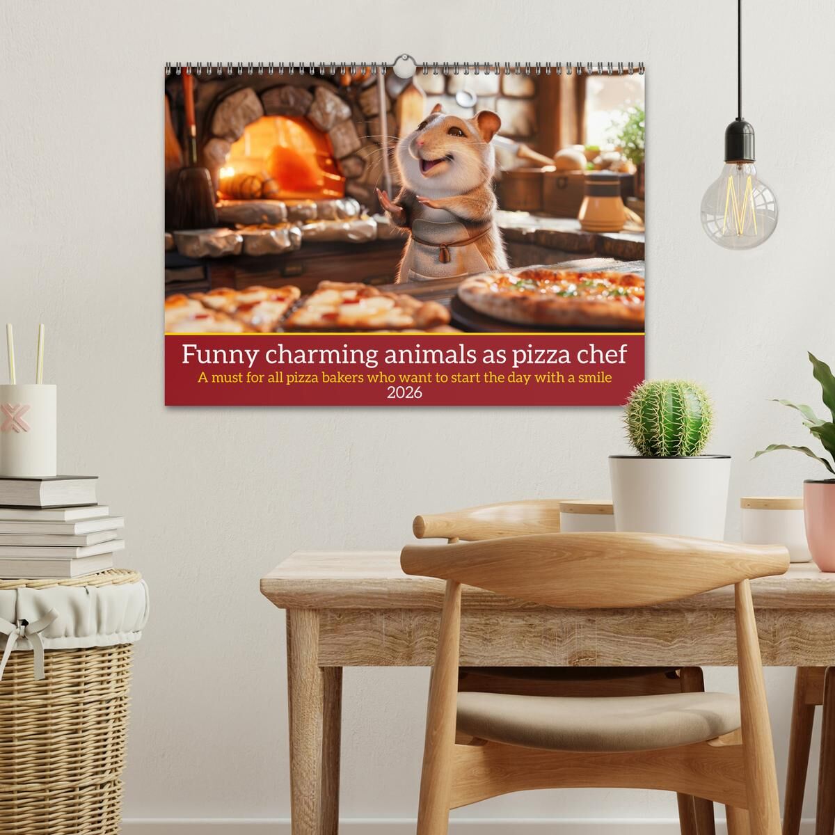 Funny charming animals as pizza chef (Wall Calendar 2026 DIN A3 landscape), CALVENDO 12 Month Wall Calendar