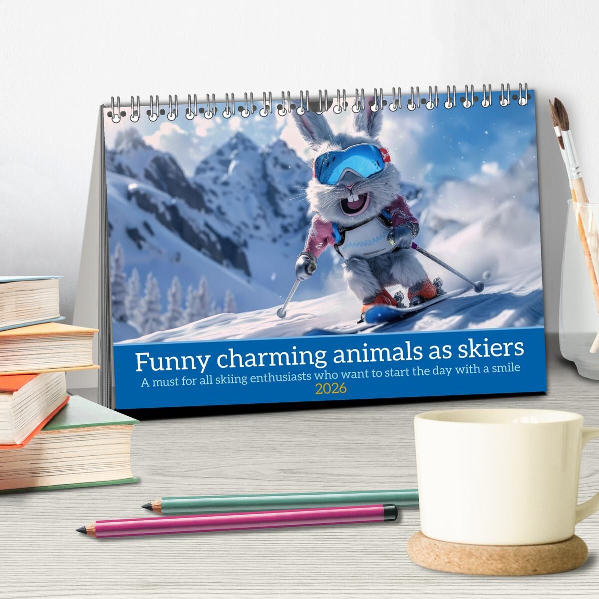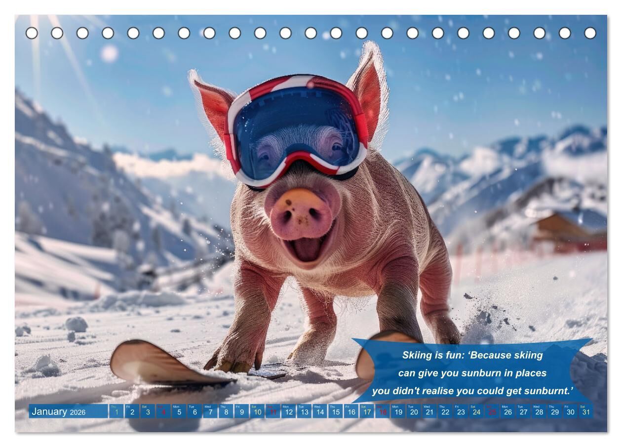 Funny charming animals as skiers (Desk Calendar 2026 DIN A5 landscape), CALVENDO 12 Month DeskCalendar
