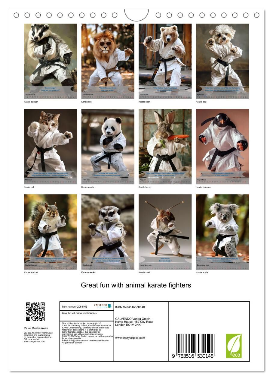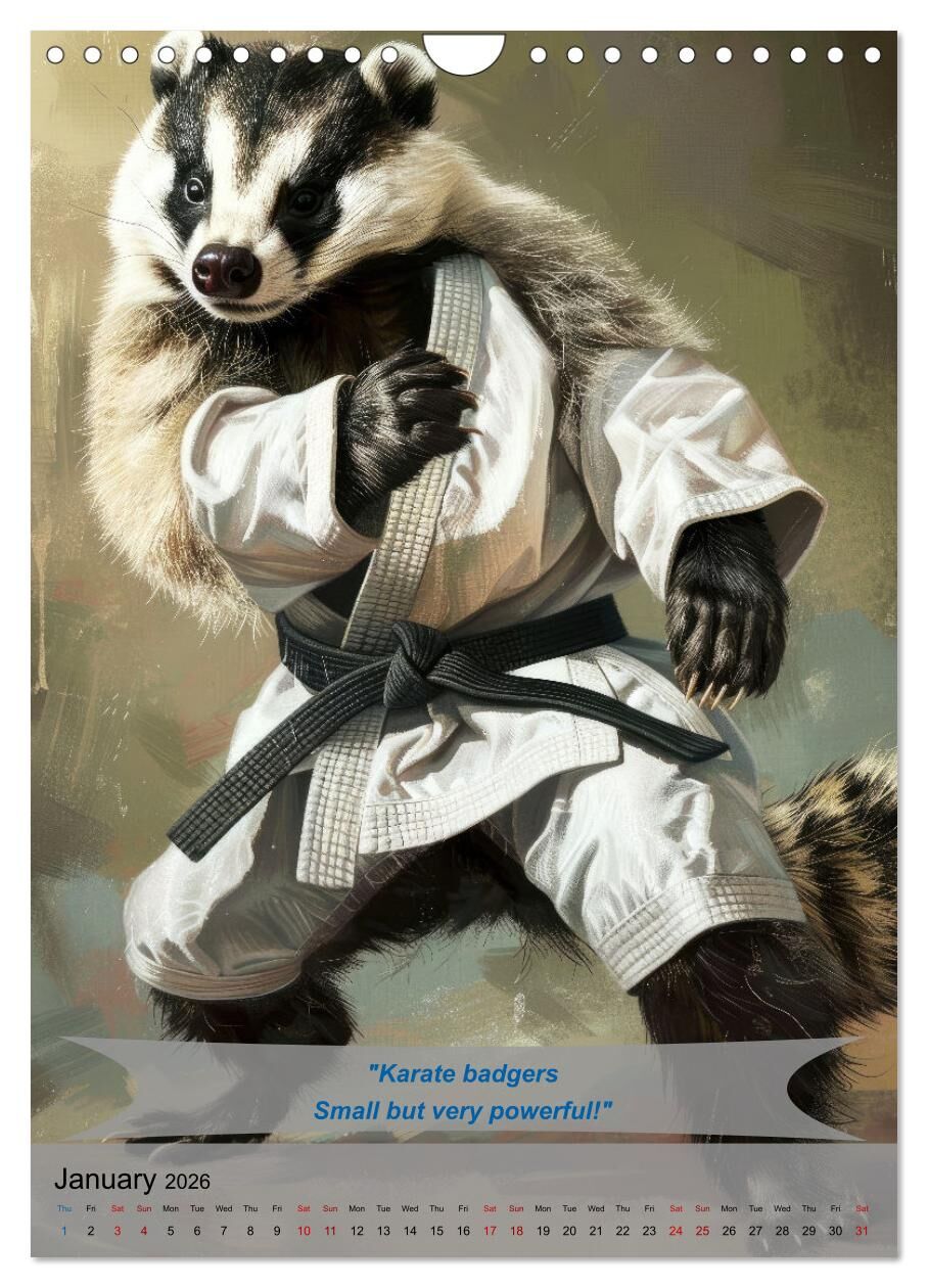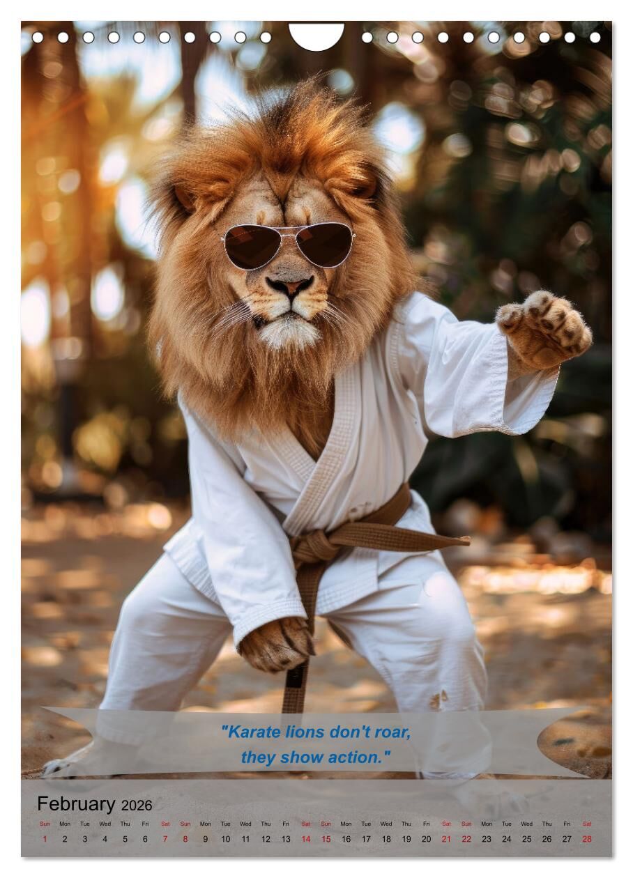Immerse yourself in the world of funny animal karate fighters. Our unique annual calendar presents you month after month with humorous quotes and adorable animals posing in impressive karate positions. From powerful lions to funny bunnys, each month surprises ...