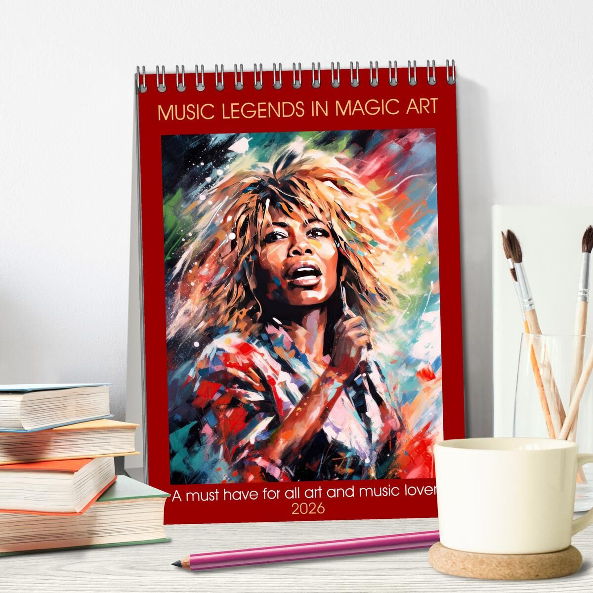 Music legends in magic art (Desk Calendar 2026 DIN A5 portrait), CALVENDO 12 Month DeskCalendar