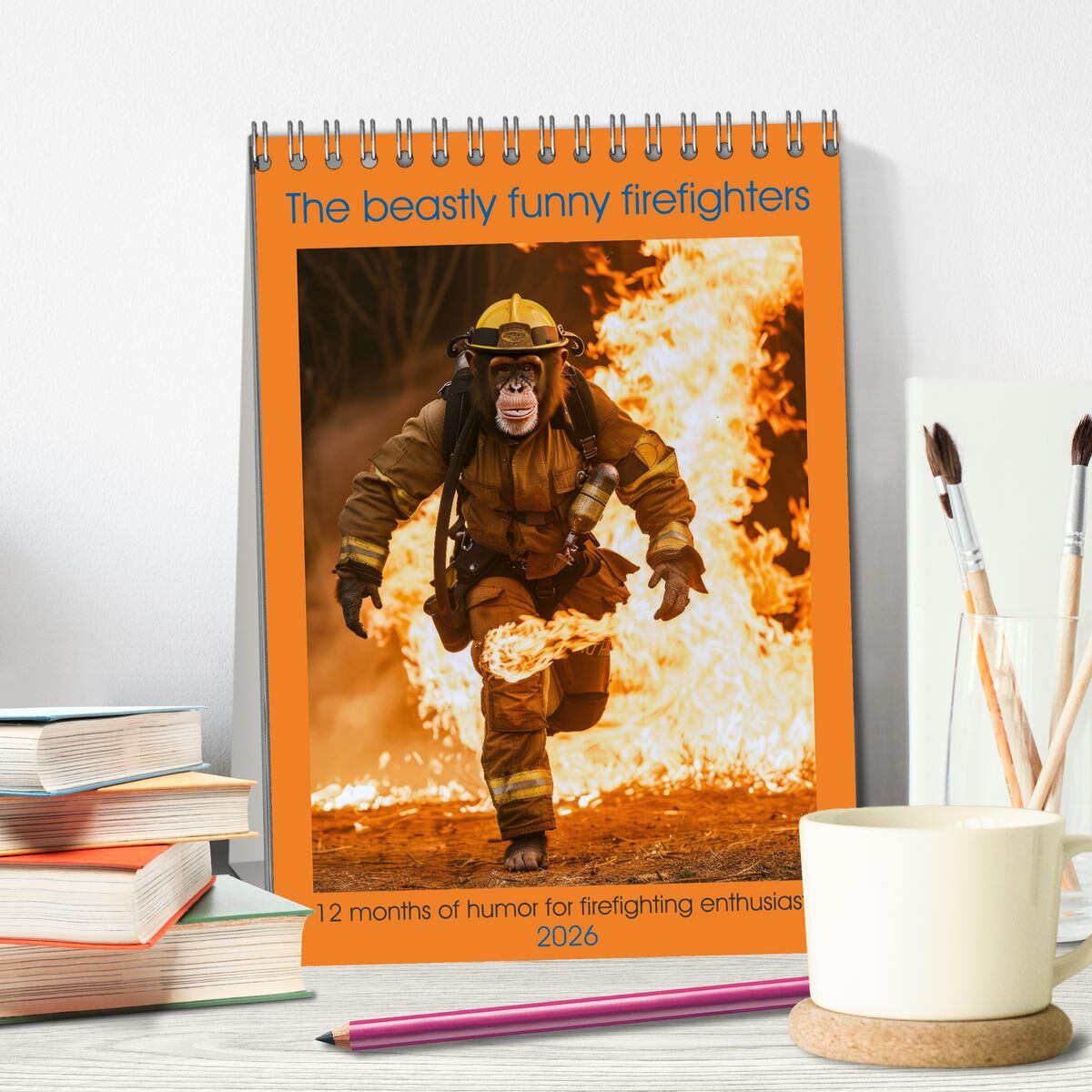 Discover the ultimate annual calendar for all firefighter fans and animal lovers. Our unique calendar will bring a smile to your face every month, with exclusive AI generated animal images in full firefighter outfits. Each image is accompanied by a humorous qu...
