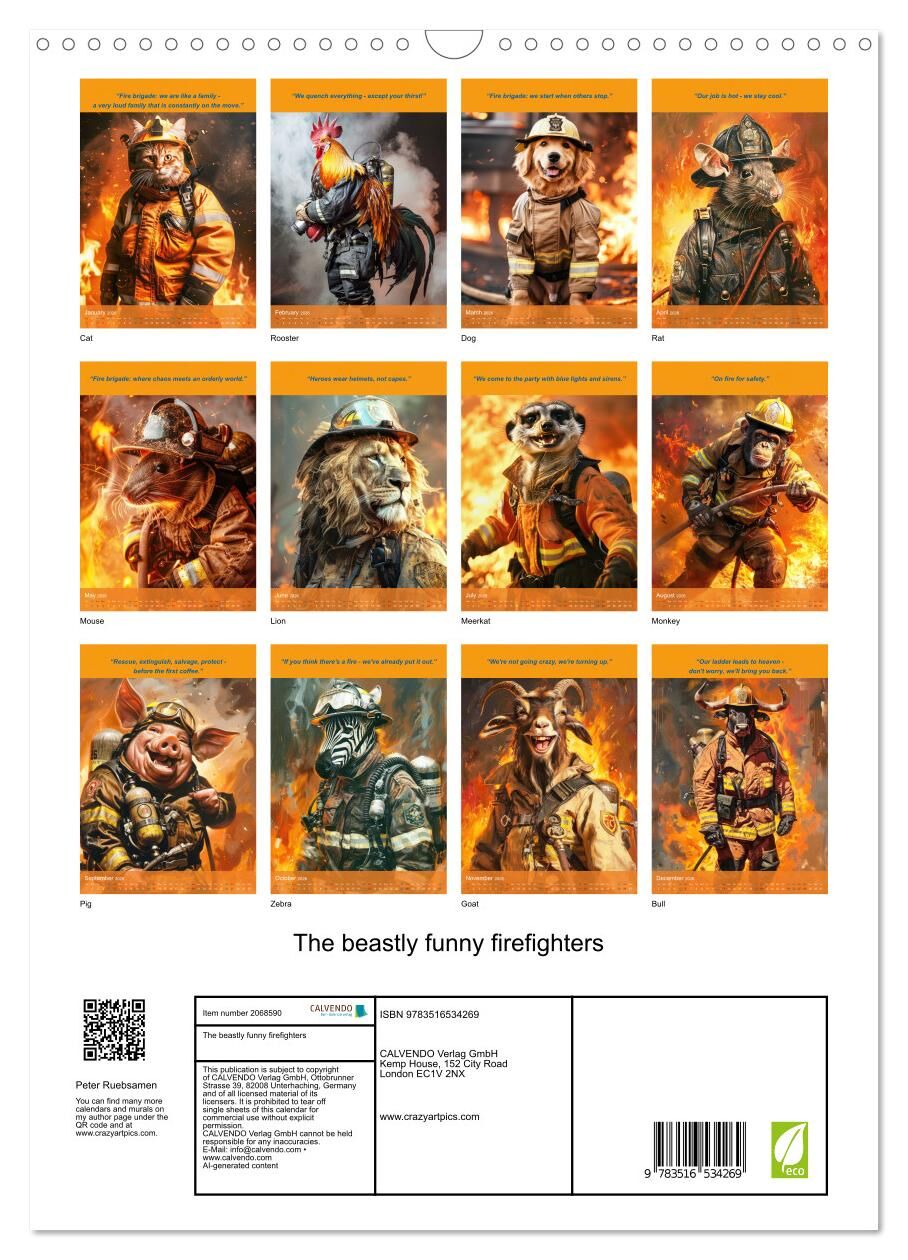 The beastly funny firefighters (Wall Calendar 2026 DIN A3 portrait), CALVENDO 12 Month Wall Calendar