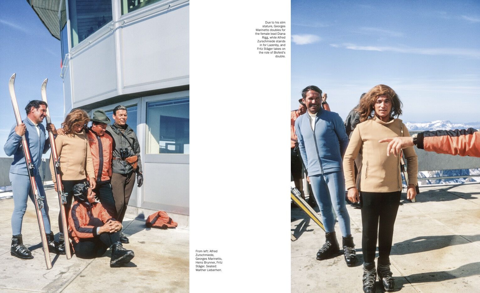 On Her Majesty's Secret Service is arguably Ian Fleming's most extraordinary Bond adventure. James Bond, bachelor, womanizer, lone wolf, and assassin, falls in love, resigns from his job as a secret agent, and marries the daughter of a Mafia boss. But during their honeymoon, tragedy strikes: His wife is assassinated. Devastated, Bond is left grieving. The man responsible is Ernst Stavro Blofeld, who not only robs Bond of any chance at a normal life but also turns their professional rivalry into a deeply personal vendetta. Equally remarkable is the 1969 film adaptation of the novel. Shot over seven months in Switzerland, the production transformed the Swiss Alps into a sprawling, open-air studio. The Schilthorn summit station in the Bernese Alps was extensively modified and renamed Piz Gloria, Blofeld's lair. But perhaps the most drastic transformation of the natural landscape occurred when 200,000 cubic meters of ice and snow were blasted from the Tschingelgrat to create the avalanche described in the novel without official permission. To bring the film to life, the production team enlisted dozens of mountain farmers, guides, ski instructors, and daredevils from the Lauterbrunnen Valley to serve as stunt performers, extras, and crew members. Mürren's hotels and infrastructure hosted the cast and crew, including Diana Rigg, Telly Savalas, and the new James Bond, George Lazenby. During those seven months many of the locals accumulated countless stories. Some of them documented their experiences in personal pho- to albums. The authors of this book interviewed these individuals, explored their albums, and examined their collections of memorabilia. This treasure trove of stories, photographs, and documents forms the foundation and inspiration for this unique photo book and is the result of years of research. Following the massive success of Goldfinger (1964), the media frenzy surrounding James Bond reached unprecedented heights. Instead of dozens of press photos, thousands were taken. Swiss tabloid Blick covered the production almost daily, and this as well as other photographic archives were made accessible to the authors. This book uncovers these untold and forgotten stories and documents, presenting over 700 photographs the vast majority published here for the first time. The Blofeld Files is both a photo book and a historical document, situating the film's production within the vibrant sociocultural context of the late 1960s. Avoiding reliance on official set photography, it offers an intimate, candid, and authentic glimpse into the world of Bond's creators and the era's distinctive atmosphere, both on and off the set.