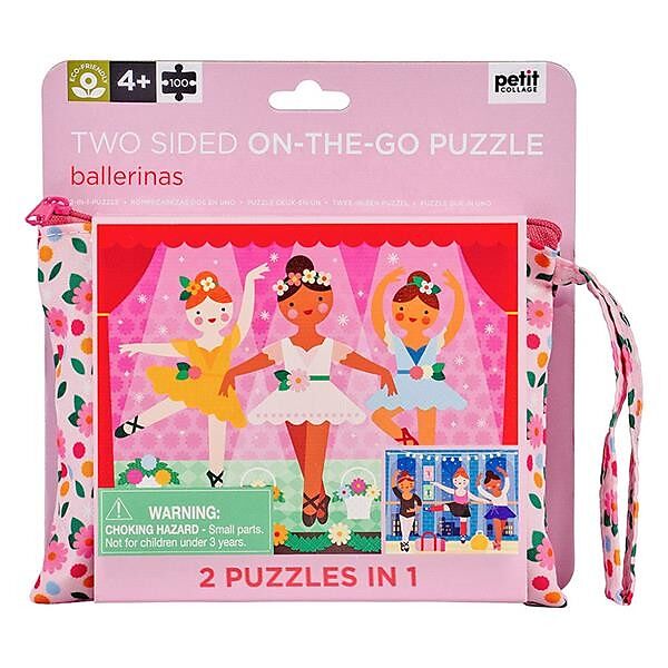 Grösse: 13 x 16.5 cm ab 4 Jahren 100 Teile inkl. passendem Resebeutel Die 100-teiligen On-The-Go-Puzzles sind zweiseitig, mit zwei einzigartigen illustrierten Motiven für doppelten Spass! Im praktischen Aufbewahrungsbeutel aus 100% recyceltem Polyestergewebe s...