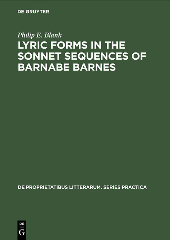No detailed description available for "Lyric forms in the sonnet sequences of Barnabe Barnes". Inhalt Frontmatter -- LYRIC FORMS IN THE SONNET SEQUENCES OF BARNABE BARNES -- ACKNOWLEDGMENTS -- CONTENTS -- INTRODUCTION -- I. MISCELLANEOUS LOVE LYRICS ...