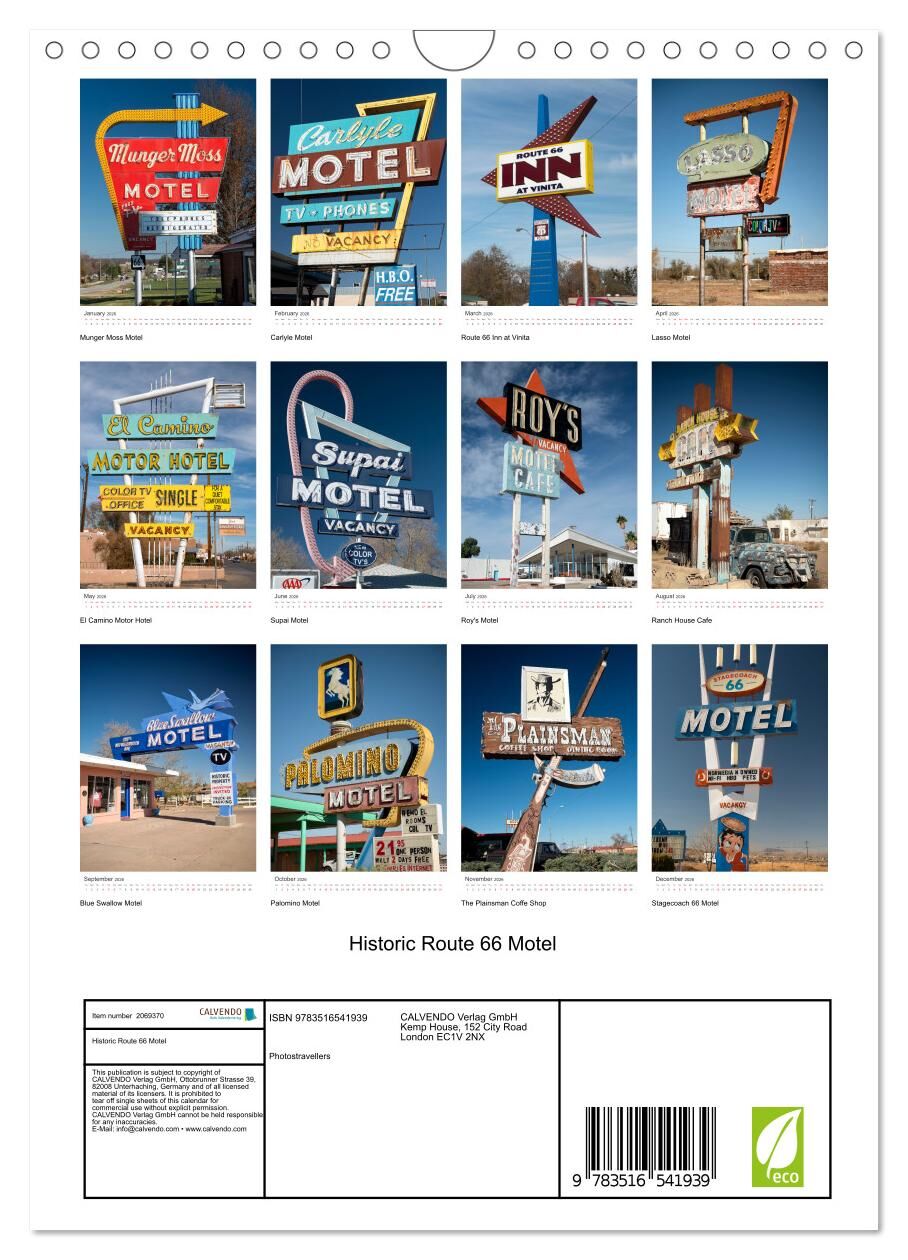 Historic Route 66 Motel (Wall Calendar 2026 DIN A4 portrait), CALVENDO 12 Month Wall Calendar