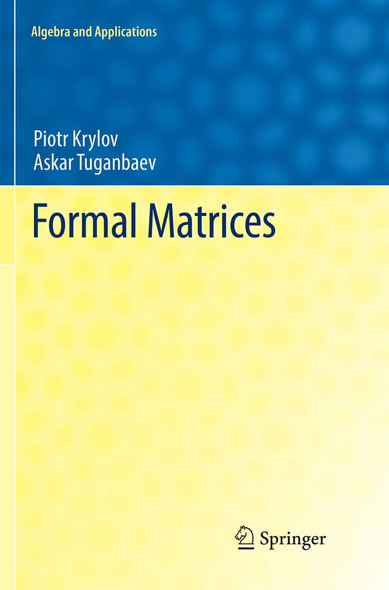 This monograph is a comprehensive account of formal matrices, examining homological properties of modules over formal matrix rings and summarising the interplay between Morita contexts and K theory. While various special types of formal matrix rings have been ...