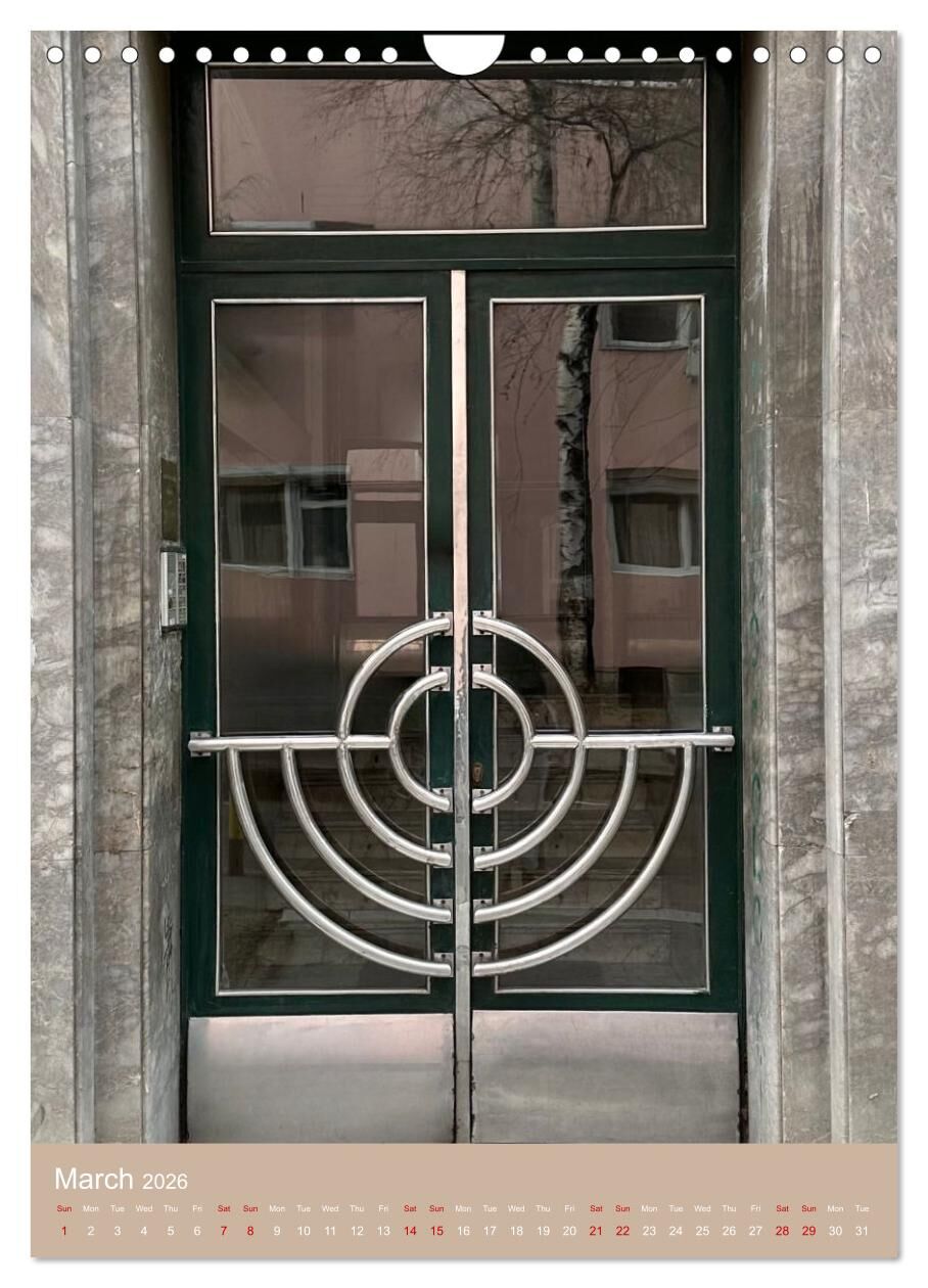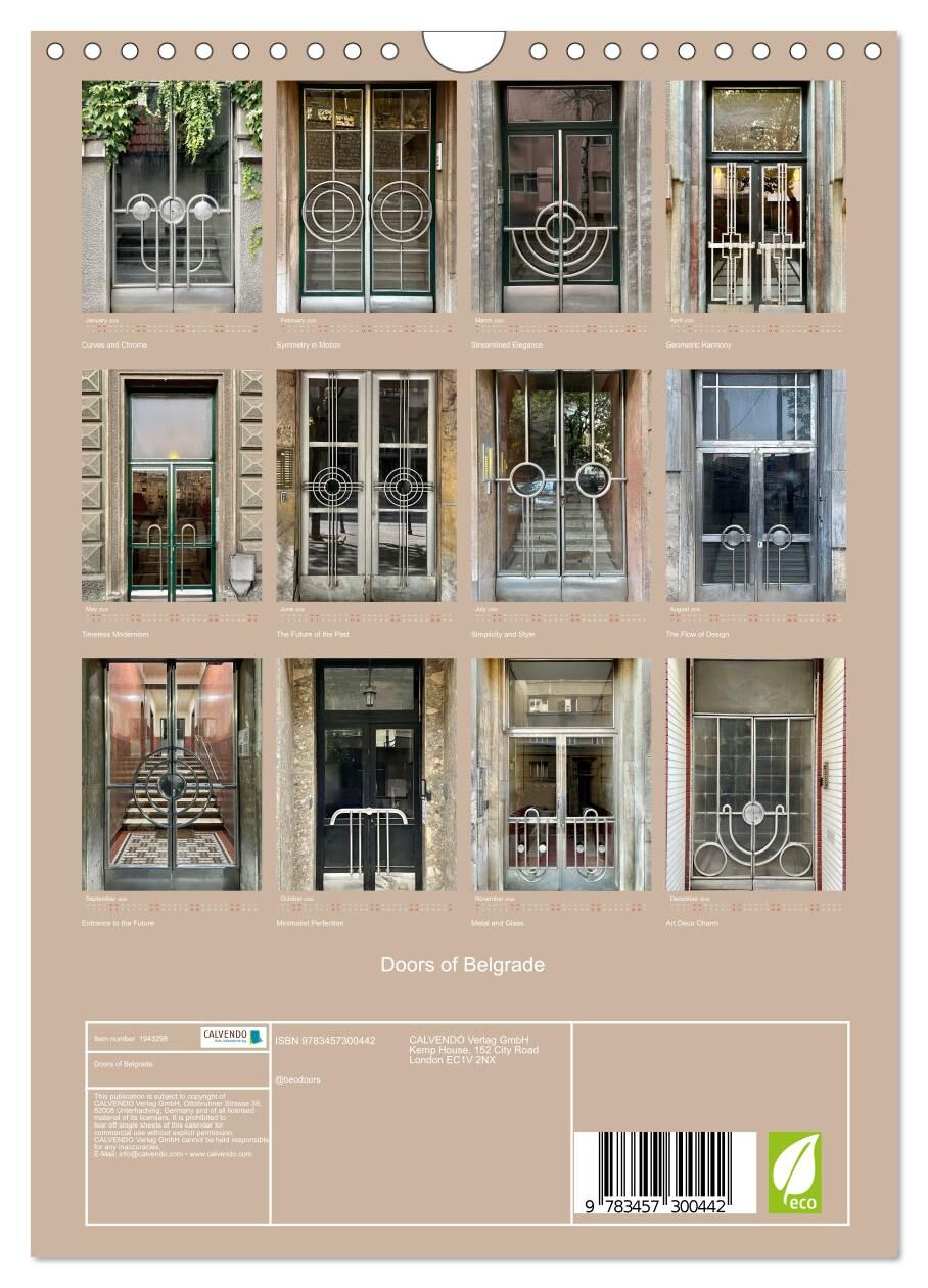 Discover Belgrade's hidden Art Deco gems. Featuring stunning Streamline Moderne entrances, this calendar brings the elegance of the city's most captivating doors to your home. Perfect for architecture lovers and design enthusiasts, each month showcases a uniqu...