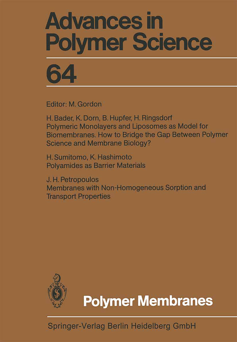 InhaltPolymeric monolayers and liposomes as models for biomembranes.- Polyamides as barrier materials.- Membranes with non-homogeneous sorption and transport properties.