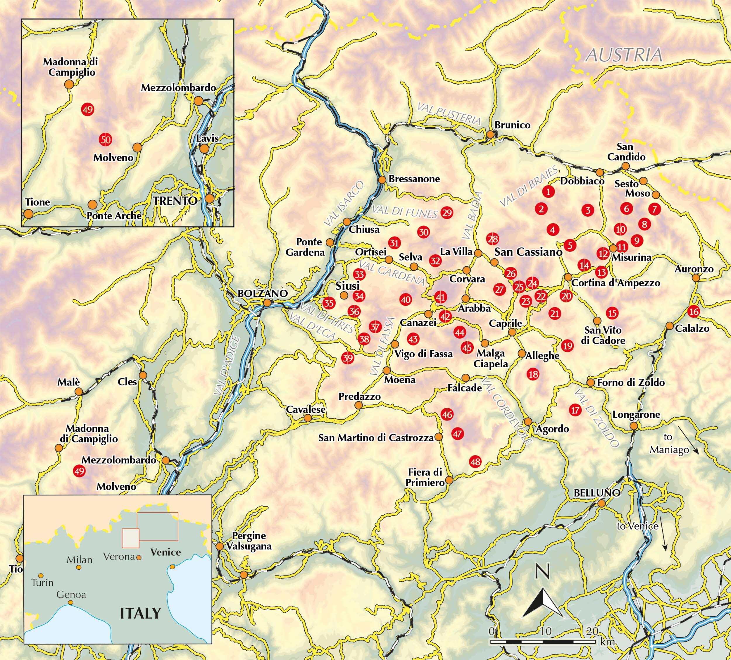 Guidebook to 50 day walks in the Dolomites, showcasing the best mountain routes in the UNESCO World Heritage Site in northeastern Italy. The Dolomites offer fantastic walking from June to September and can easily be reached from Verona, Treviso, Venice and In...