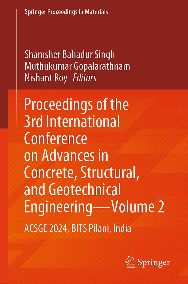This book consists of selected papers presented at the 3rd International Conference on Advances in Concrete, Structural, and Geotechnical Engineering (ACSGE 2024) held at BITS, Pilani, India. The papers represent the latest research work in the fields of advanced composite materials, advanced computational techniques for structures, applications of nanotechnology in civil engineering, bridge engineering, composite structures, concrete technology, the fatigue life of structures, fire-resistant structures, functionally graded materials and structures, geotechnical processes, ground improvement techniques, offshore structures, performance-based design of structures, pre-cast pre-stressed concrete structures, seismic design, and construction, soil structure interaction, structural health assessment and rehabilitation, sustainability of construction, design, and management. The papers are presented by an international pool of academics, research scientists, and industrial experts and therefore cater to the global audience from the fields of construction materials, design guidelines, geotechnical engineering, concrete infrastructures, and structural engineering.