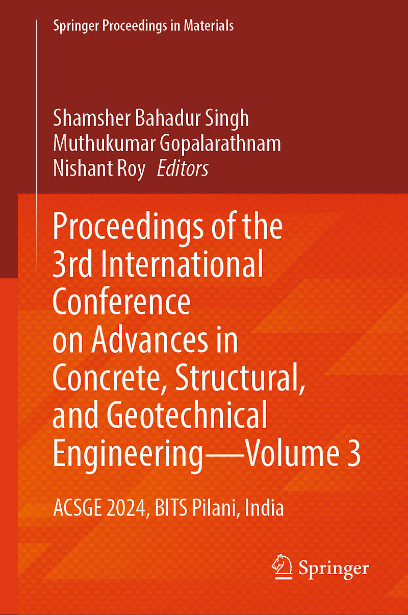 This book consists of selected papers presented at the 3rd International Conference on Advances in Concrete, Structural, and Geotechnical Engineering (ACSGE 2024) held at BITS, Pilani, India. The papers represent the latest research work in the fields of adva...This book consists of selected papers presented at the 3rd International Conference on Advances in Concrete, Structural, and Geotechnical Engineering (ACSGE 2024) held at BITS, Pilani, India. The papers represent the latest research work in the fields of advanced composite materials, advanced computational techniques for structures, applications of nanotechnology in civil engineering, bridge engineering, composite structures, concrete technology, the fatigue life of structures, fire-resistant structures, functionally graded materials and structures, geotechnical processes, ground improvement techniques, offshore structures, performance-based design of structures, pre-cast pre-stressed concrete structures, seismic design, and construction, soil structure interaction, structural health assessment and rehabilitation, sustainability of construction, design, and management. The papers are presented by an international pool of academics, research scientists, and industrial experts and therefore cater to the global audience from the fields of construction materials, design guidelines, geotechnical engineering, concrete infrastructures, and structural engineering.