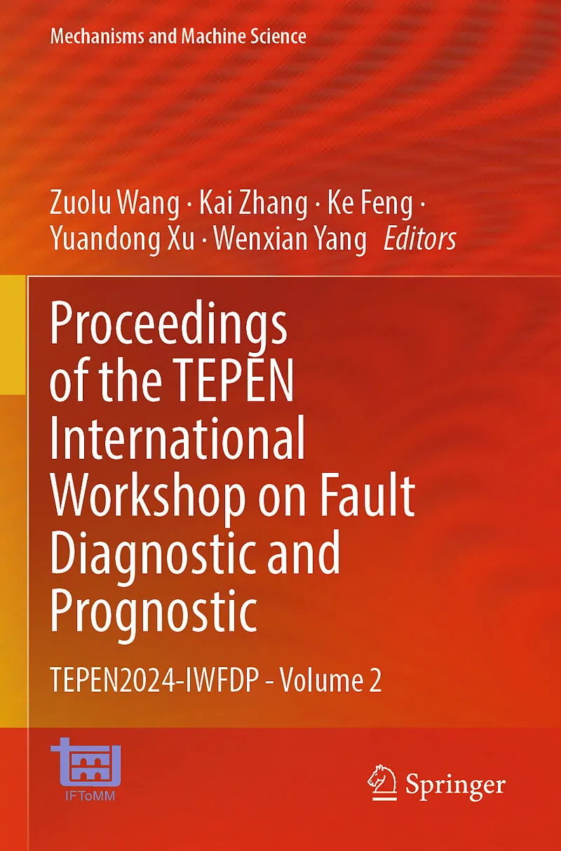 Analysis of Factors Influencing the Bottom Impact Safety Performance of Power Battery Systems.- Industrial Gearbox Fault Diagnosis Based on Vision Transformer and Infrared Thermal Imaging.- Optimized Fault Diagnosis Method for Wind Turbine Gearbox Using PSO based Neutrosophic K Nearest Neighbor Algorithm.- Short term Charging Load Prediction of Electric Vehicles based on K means Clustering WOA BP.- A Sparse Non stationary Time Series Model with Ensemble Basis for Gearbox Fault Detection under Variable Speed Conditions.- Fault diagnosis method of planetary gearbox based on digital twin of virtual and real data consistency.- Research on the Effect of Aero engine Connection Interface on Acoustic Emission Signals.- Digital Twin based Simulation and Virtual Real Mapping of Inspection Cell Robots.- A Review of Deep Learning Based Target Detection Algorithms.- A Review of Machine Learning Based Icing Prediction Methods for Wind Turbine Blades.- Acoustic Fault Identification in Maritime Vessels with limited Data using WGAN based Approach.- Dual channel sensor fault detection and isolation based on nonlinear Kalman filter.- Long-term load forecasting based on improved SABO optimization ELM.- Fault diagnosis method for rolling bearings based on CVAE GAN under limited data.- A Novel Time varying Structural Element for Morphological Filtering based Bearing Fault Diagnosis.- DTST MFN Enhancing Anomalous Sound Detection with Deep Temporal Features and Efficient Attention.- Speech Enhancement Method Based on Fusion Attention with Local Recurrence.- Fluid solid coupling vibration analysis of the wing of an underwater vehicle.- Optimal dispatch of microgrid based on demand side response.- Blind Source Separation Based on Neurally plausible alternating Optimization based Online Dictionary Learning (NOODL).- Research on Time Difference of Arrival TDOA Gas Leakage Source Localization Method Based on Improved Sparrow Algorithm.- Bearing fault diagnosis based on an improved morphological filter.- Fault Diagnosis of Rolling Bearing in Broad Learning System Based on Multi Domain Feature Selection.- A Fault Early Warning Method for Centrifugal Compressors Based on Multi Task Gaussian Processes.- Research on Fault Diagnosis Method for Rolling Bearings Based on Improved ConvNext V2.- Domain adaptive coding transfer diagnosis method and its application in fault diagnosis.- A weighted Short time Fourier Transform Acoustic Signals for Rotating Machinery Faults.- Enhancing Muscle Signal Analysis Insights from High Order Synchrosqueezing Wavelet Transform on Electromyography Signals.- A bearing fault diagnosis technique based on an optimized MCKD and Multi scale DSCN network.- Structural Damage Detection of Cracked Beams Based on Nonlinear Output Frequency Response Functions and Support Vector Machine.- Bearing Fault Detection Based on Parameters Optimized Stochastic Resonance.- The slippage model of outer ring faults in deep groove ball bearings induced by impact forces under load.- A long-term prediction method of gas concentration signal with noise in fully mechanized coal mining face using CEEMDAN combined with GRU.- Multi stage damage identification of elastically restrained plates based on singular value decomposition and Faster RCNN.- Few Shot Graph Neural Networks Framework incorporating DGAT for Planetary Gearbox Diagnosis.- Research on power control outer loop based on phase locking in grid-connected inverter.- Fault diagnosis of mechanical equipment using a distribution guided adversarial transfer network.- A Microscopic Damage Analysis Model for the Matrix of 8Cr4Mo4V Alloy.- Compound Faults Weak Feature Extraction of Rolling Bearing Based on Parameters Optimized CYCBD.- A fuzzy variable weight hierarchical condition assessment method for marine gas turbine.- Research on the Modeling Method and Parameter Identification of Bolted Cylindrical Shell Structure Based on Thin layer Element Method.- Identification of Fatigue Cracks in a Stiffness Mistuned Blisk Based on Nonlinear Vibration Features.- A local synchrosqueezing based TFA post processing tool and application to bearing fault diagnosis.- A Real time Reduced Order Modeling Technique for Mistuned Bladed Disks at Variable Speeds.- Transfer fault diagnostics of planetary gearbox from steady to variable operating conditions.- SRP sound source localization algorithm based on BSO and joint weighting.- Experimental Study on Structural Damage Detection of Cracked Beams Based on Nonlinear Output Frequency Response Functions.- Effect of Double Cracks in Thin Plates on the Second Harmonic of Nonlinear Lamb Waves.- A Review of Application of Spiking neural networks in equipment fault diagnosis.- Semi-supervised proxy contrastive generalization network for bearing fault diagnosis.- Differentiating Sun Gear Fault Locations by integrating On Rotor Sensing with Tidal Cycle.- Analysis of contact and vibration characteristics of the planetary cylindrical roller bearing.- Research on Defect Measurement Method for Nuclear Components Based on Smooth Optimization Algorithm.- Power loss analysis of axle box bearing of High Speed Train excited by track irregularity and wheel flat.- Graded Metamaterial Beam for Flexural Wave Rainbowing Trapping and Multiband Energy Harvesting.
