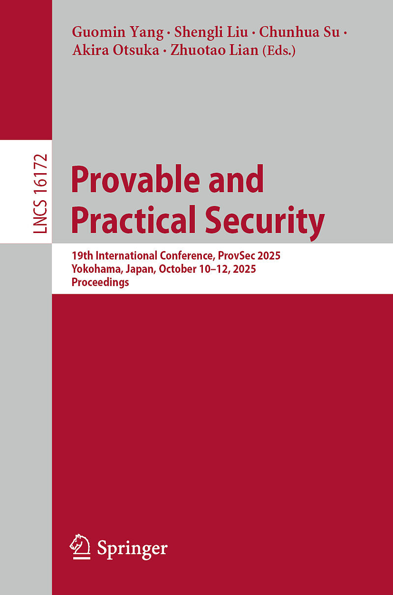 This book constitutes the proceedings of the 19th International Conference on Provable and Practical Security, ProvSec 2025, which took place in Yokohama, Japan, during October 1012, 2025. The 22 full papers, 3 short papers and 5 posters included in this book...