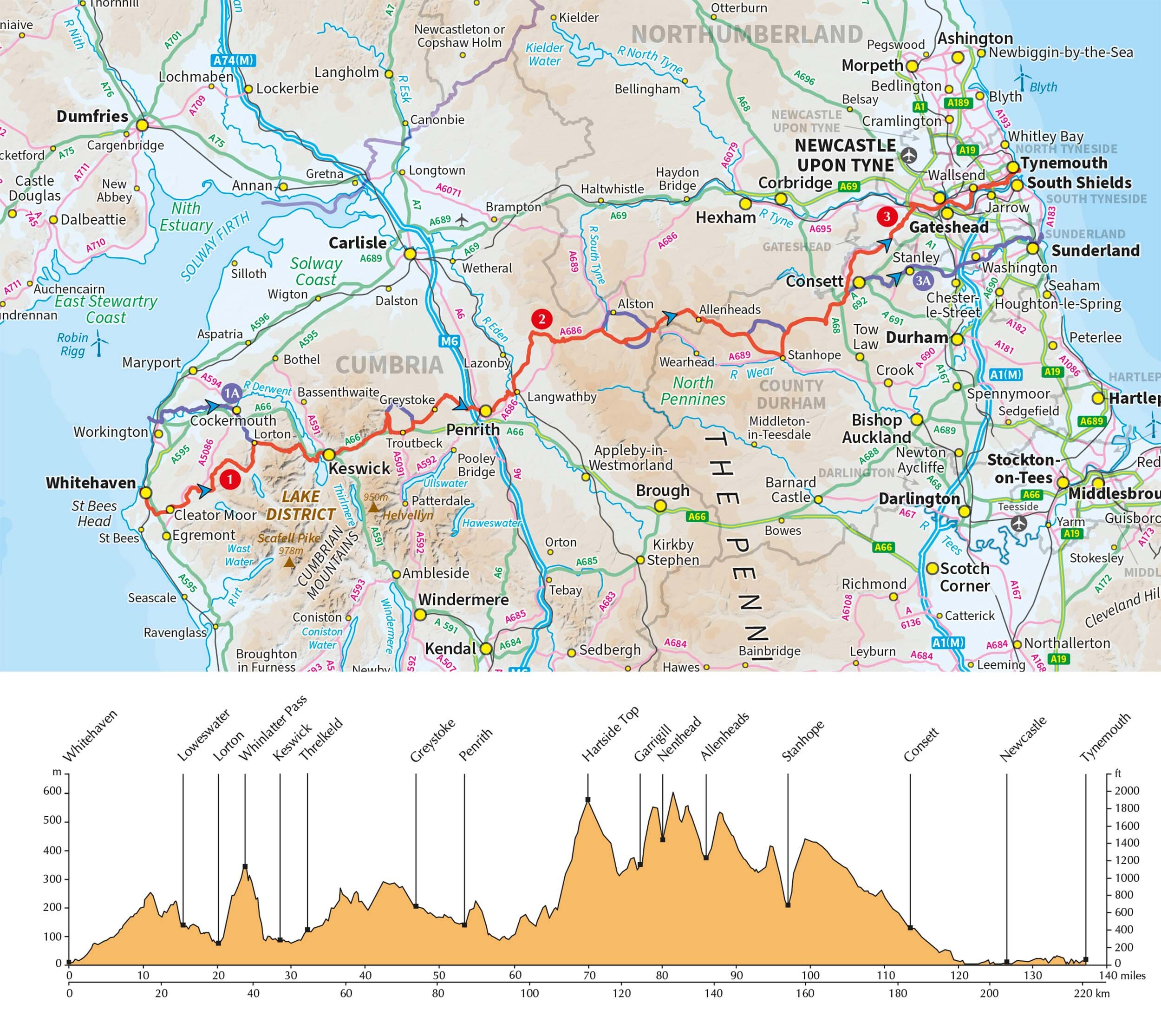 A guidebook to cycling the 220km (137 mile) Coast to Coast (C2C) cycle route from either Whitehaven or Workington to Tynemouth or Sunderland. This long-distance cycle through the Lake District, Pennines and County Durham is suitable for both first-time and ex...