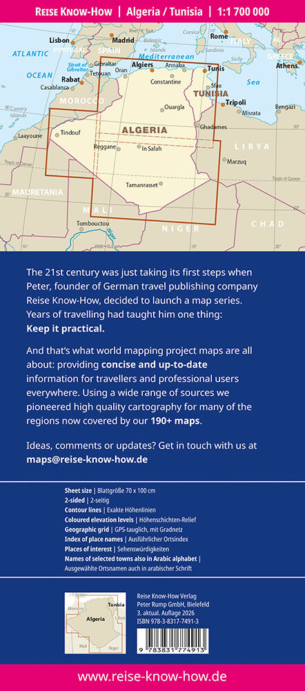Map of Algeria, Tunisia: Tearproof, waterproof, and writable like paper ideal for on the go The map of Algeria, Tunisia from Reise Know-How is the perfect companion for any adventure on the go: