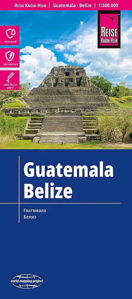 Hochreißfeste und 100% wasserfeste Landkarte Guatemala, Belize aus der Serie world mapping project. Reise Know-How Landkarten zeichnen sich durch besonders stabiles Kunststoffpapier aus, das beschreibbar ist wie Papier, sogar mit Bleistift. Der Pappumschlag i...