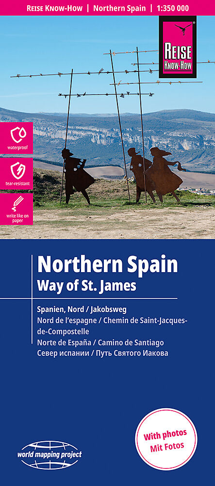 Hochreißfeste und 100% wasserfeste Landkarte Spanien, Nord aus der Serie world mapping project. Reise Know-How Landkarten zeichnen sich durch besonders stabiles Kunststoffpapier aus, das beschreibbar ist wie Papier, sogar mit Bleistift. Der Pappumschlag ist a...