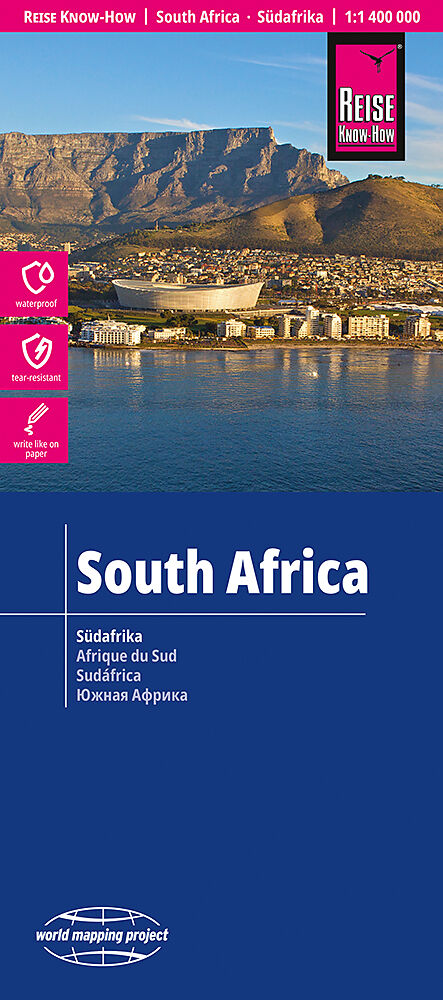 Hochreißfeste und 100% wasserfeste Landkarte Südafrika aus der Serie world mapping project. Reise Know-How Landkarten zeichnen sich durch besonders stabiles Kunststoffpapier aus, das beschreibbar ist wie Papier, sogar mit Bleistift. Der Pappumschlag ist abneh...