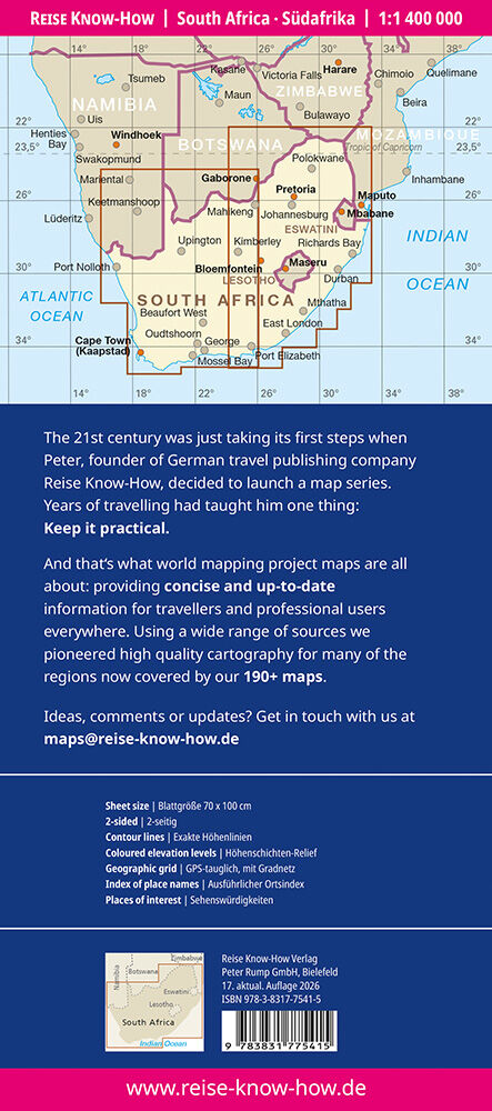 Map of South Africa: Tearproof, waterproof, and writable like paper ideal for on the go The map of South Africa from Reise Know-How is the perfect companion for any adventure on the go: