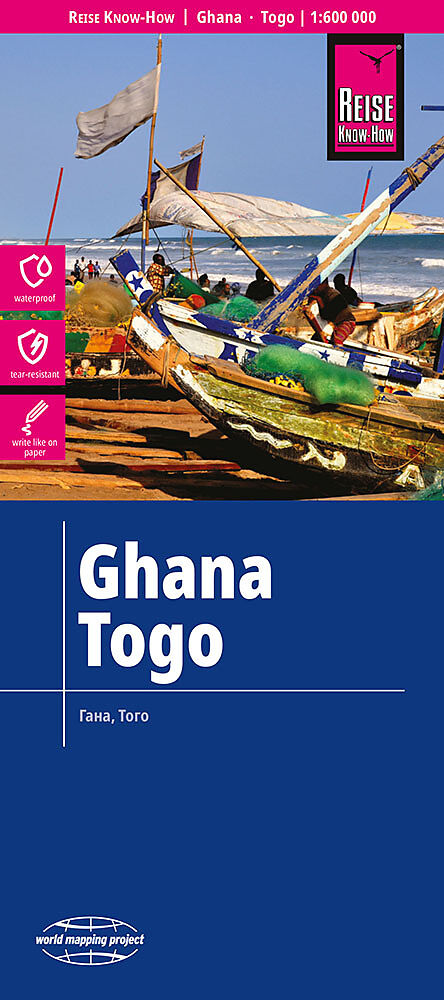 Hochreißfeste und 100% wasserfeste Landkarte Ghana, Togo aus der Serie world mapping project, erschienen im Reise Know-How Verlag. Reise Know-How Landkarten zeichnen sich durch besonders stabiles Kunststoffpapier aus, das beschreibbar ist wie Papier, sogar mit...