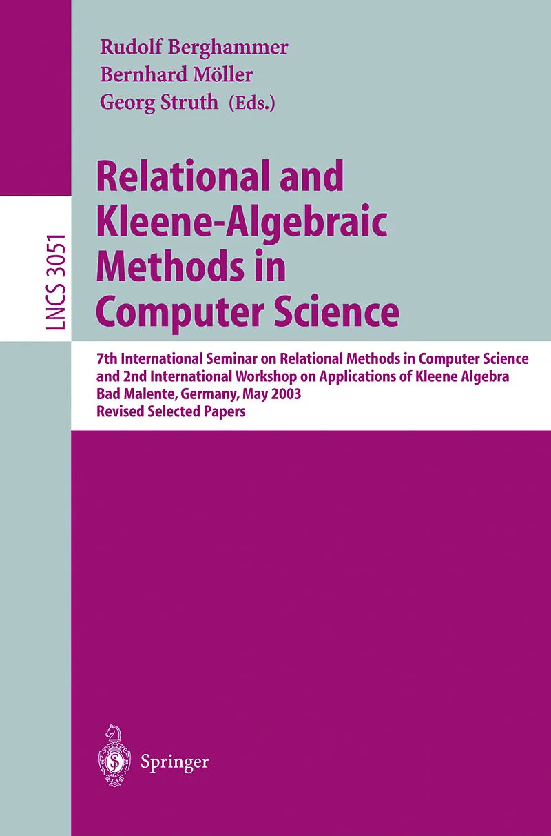 This volume contains the proceedings of the 7th International Seminar on - lational Methods in Computer Science (RelMiCS 7) and the 2nd International Workshop onApplications ofKleeneAlgebra.Thecommonmeetingtookplacein Bad Malente (near Kiel), Germany,from May ...