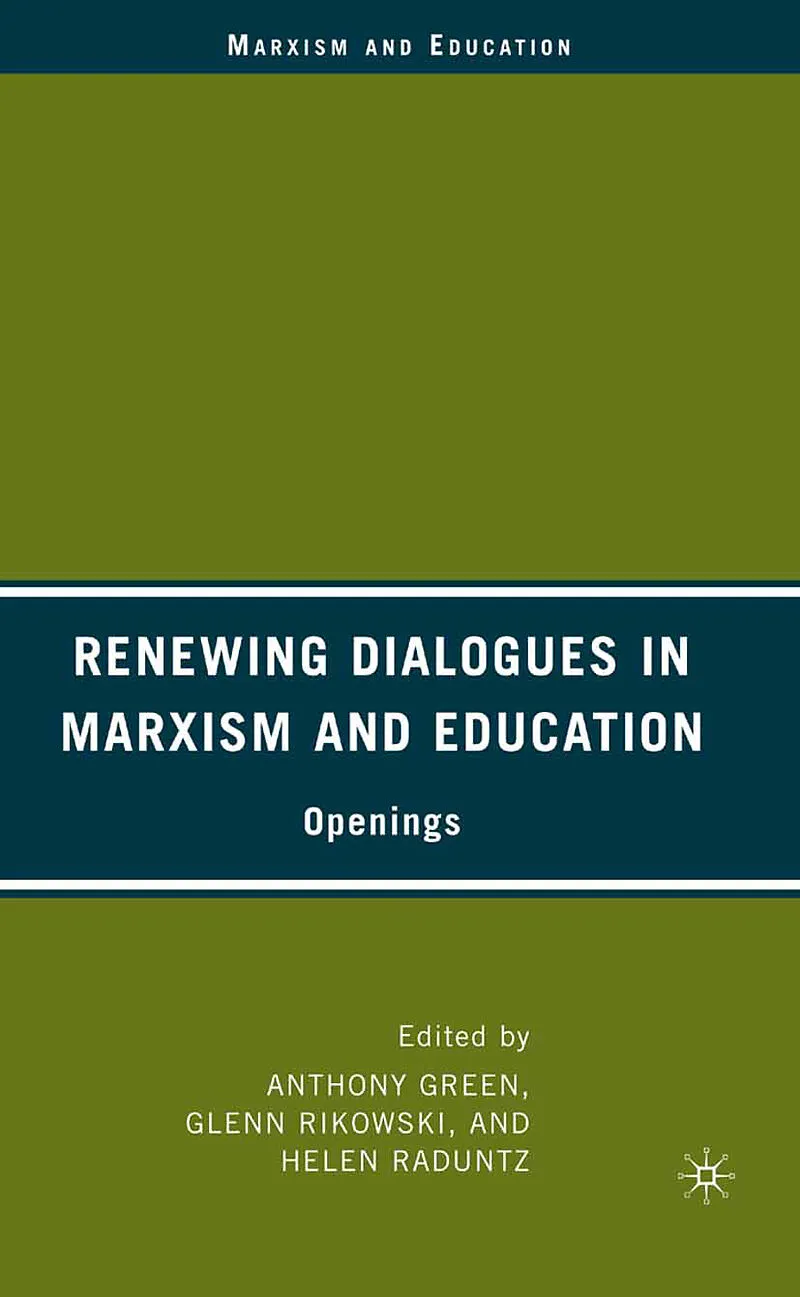 Introduction: Marxism and Education Renewing the Dialogue - Anthony Green & Glenn Rikowski * Marxism, Education and Dialogue - Anthony Green * PART I: GLOBALIZATION, NEOLIBERALISM, AND EDUCATION IN THE TRANSITIONAL EPOCH * The Transitional Epoch: The Context of Education, Geraldine Thorpe - Pat Brady * Globalization and Education - Glenn Rikowski * Education, Class and Capital in the Epoch of Neo-liberal Globalization - Dave Hill * Marketisation, Neoliberalism and Education: A Marxist Critique of New Labour's Five Year Strategy for Education * PART II: DISCOURSE, POSTMODERNISM, AND POSTSTRUCTURALISM * Critical Discourse Analysis in Educational Research: A Study of New Labour - Jane Mulderigg * A Dialogue Between a Postmodern Educational Thinker and a Marxist Educational Theorist, Elizabeth Atkinson - Mike Cole * Marx, Education and the Knowledge Economy: Reviving Marx's Radical Political Economy through Foucault - Michael A. Peters * PART III: POLITICS, DIVISIONS, AND STRUGGLE IN TEACHING, LEARNING, AND EDUCATION POLICY * Informal Learning in Theory and Practice: Using the Standpoint Method to Locate the Learner - Rachel Gorman * Myths of Mentoring: Developing a Marxist-Feminist Critique - Helen Colley * Popular Press, Visible Value: How Debates on Exams and Student Debt have Unmasked the Commodity Relations of the Learning Society - Paul Warmington * PART IV: LABOUR AND COMMODIFICATION IN EDUCATION - THEORY, PRACTICE, AND CRITIQUE * Academic Labour: Producing Value and Producing Struggles - David Harvey * Distillation: Education in Marx's Social Universe - Glenn Rikowski * Marxist Political Praxis: Class Notes on Academic Activism in the Corporate University - Gregory Martin * The Making and Meaning of Humanization - Paula Allman * The Dialogics of Renewal: Raising the Stakes in Education?