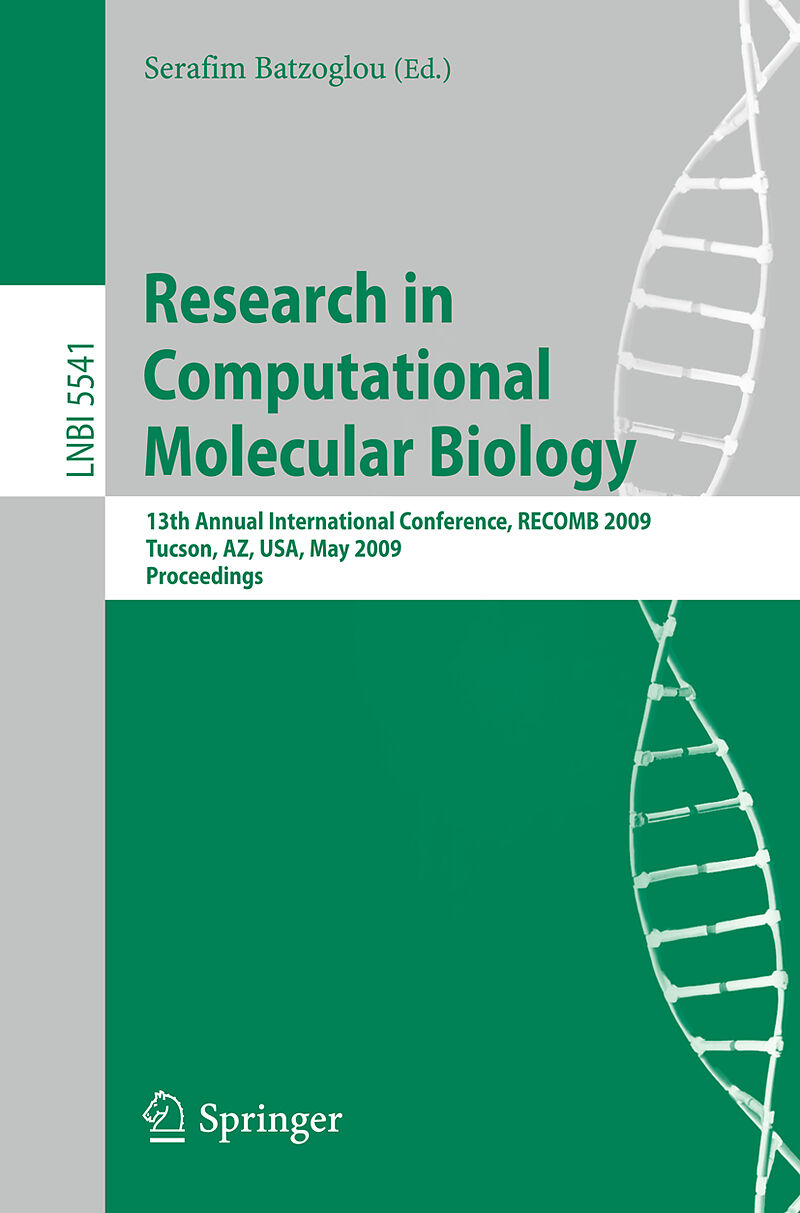 This book constitutes the refereed proceedings of the 13th Annual International Conference on Research in Computational Molecular Biology, RECOMB 2009, held in Tucson, Arisona, USA in May 2009. The 37 revised full papers presented were carefully reviewed and s...