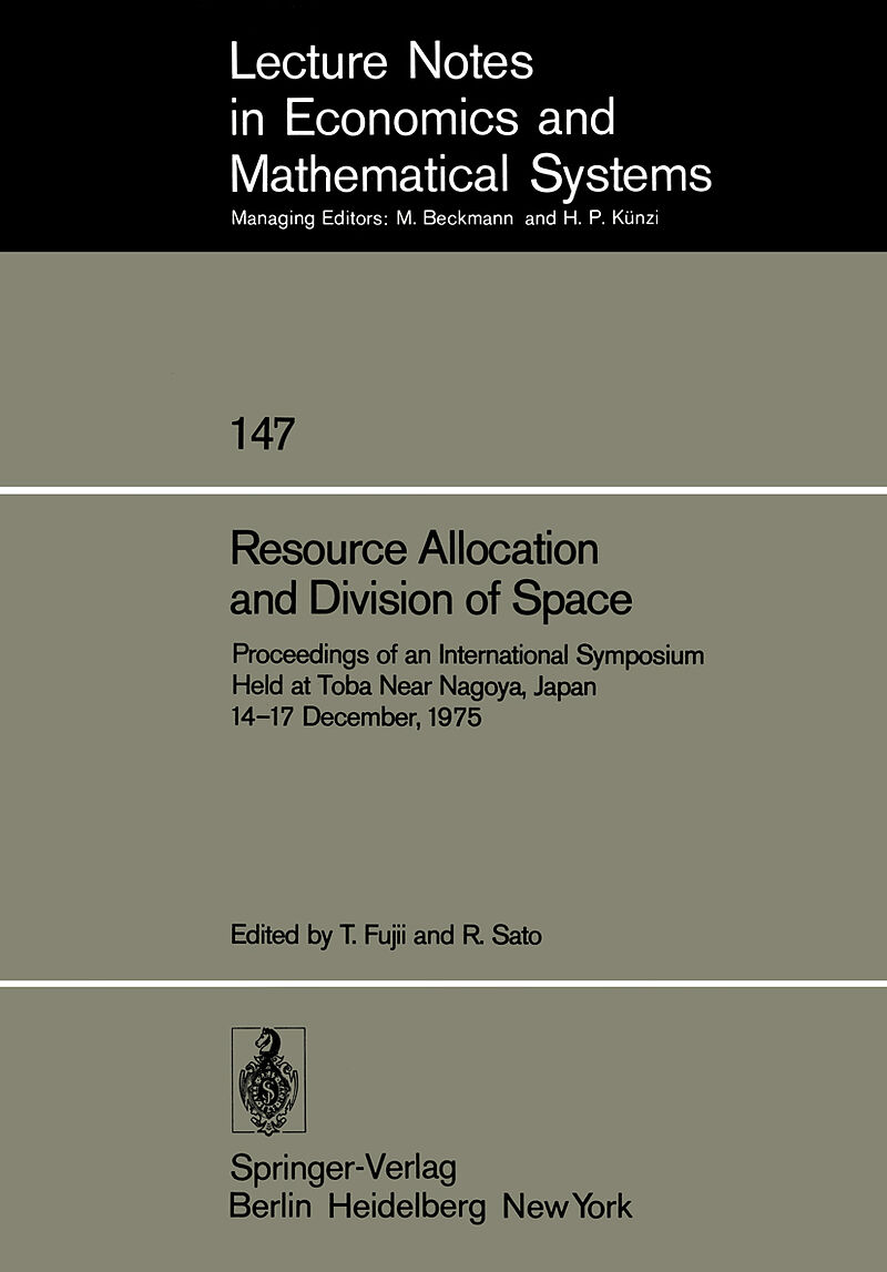 This volume on the proceedings of a symposium on Resource Allocation and Division of Space represents a revised interest in the old problem of allocation and a fresh attack on the increasingly vital problem of space management. The symposium was held at the To...
