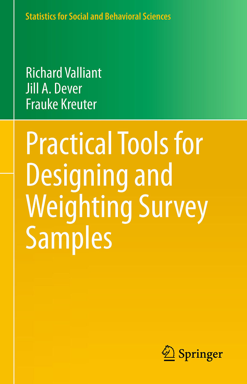 Richard Valliant, PhD, is Research Professor Emeritus at the Institute for Social Research at the University of Michigan and at the Joint Program in Survey Methodology at the University of Maryland. He is a Fellow of the American Statistical Association, an elected member of the International Statistical Institute, and has been an Associate Editor of the Journal of the American Statistical Association, Journal of Official Statistics, and Survey Methodology. Jill A. Dever, PhD, is Senior Research Statistician at RTI International in Washington, DC. She is a Fellow of the American Statistical Association, Associate Editor for Survey Methodology and the Journal of Official Statistics, and an Assistant Research Professor in the Joint Program in Survey Methodology at the University of Maryland. She has served on several panels for the National Academy of Sciences and as a task force member for the American Association of Public Opinion Research's report on nonprobability sampling. Frauke Kreuter, PhD, is Professor and Director of the Joint Program in Survey Methodology at the University of Maryland, Professor of Statistics and Methodology at the University of Mannheim, and Head of the Statistical Methods Research Department at the Institute for Employment Research (IAB) in Nürnberg, Germany. She is a Fellow of the American Statistical Association and has been Associate Editor of the Journal of the Royal Statistical Society, Journal of Official Statistics, Sociological Methods and Research, Survey Research Methods, Public Opinion Quarterly, American Sociological Review, and the Stata Journal. She is founder of the International Program for Survey and Data Science and co-founder of the Coleridge Initiative.