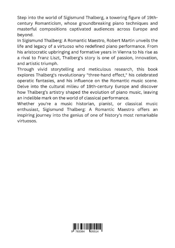 Step into the world of Sigismund Thalberg, a towering figure of 19th-century Romanticism, whose groundbreaking piano techniques and masterful compositions captivated audiences across Europe and beyond. In Sigismund Thalberg: A Romantic Maestro, Robert Martin u...