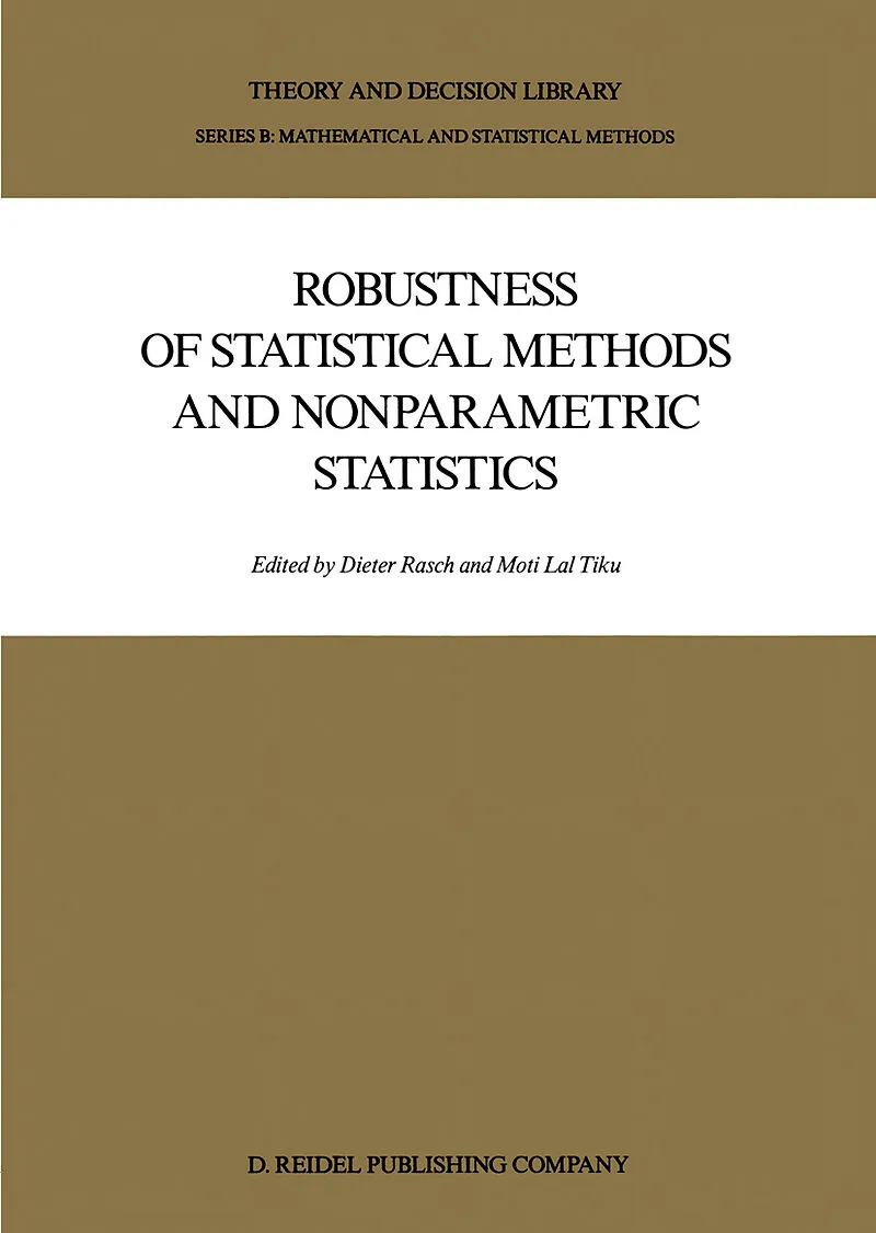 This volume contains most of the invited and contributed papers presented at the Conference on Robustness of Statistical Methods and Nonparametric Statistics held in the castle oj'Schwerin, Mai 29 - June 4 1983. This conference was organized by the Mathem...This volume contains most of the invited and contributed papers presented at the Conference on Robustness of Statistical Methods and Nonparametric Statistics held in the castle oj'Schwerin, Mai 29 - June 4 1983. This conference was organized by the Mathematical Society of the GDR in cooperation with the Society of Physical and Mathematical Biology of the GDR, the GDR-Region of the International Biometric Society and the Academy of Agricultural Sciences of the GDR. All papers included were thoroughly reviewed by scientist listed under the heading "Editorial Collabora tories·'. Some contributions, we are sorry to report, were not recommended for publi cation by the rf'vif'wers and do not appear in these proceedings. The editors thank the reviewers for their valuable comments and suggestions. The conference was organizf'd bv a Programme Committee, its chairman was Prof. Dr. Dieter Rasch (Research Centre of Animal Production, Dummerstorf-Rostock). The members of the Programme Committee were Prof. Dr. ,Johannes Adam (Martin-Luther-University Halle) Prof. Dr. Heinz Ahrens (Academy of Sciences of the GDR, Berlin) Doz. Dr. Jana Jureckova (Charles University Praha) Prof. Dr. Moti Lal Tiku (McMaster University, Hamilton, Ontario) The aim of the conference was to discuss several aspects of robustness but mainly to present new results regarding the robustness of classical statistical methods especially tests, confidence estimations, and selection procedures, and to compare their perfor mance with nonparametric procedures. Robustness in this sens~ is understood as intensivity against. violation of the normal assumption.
