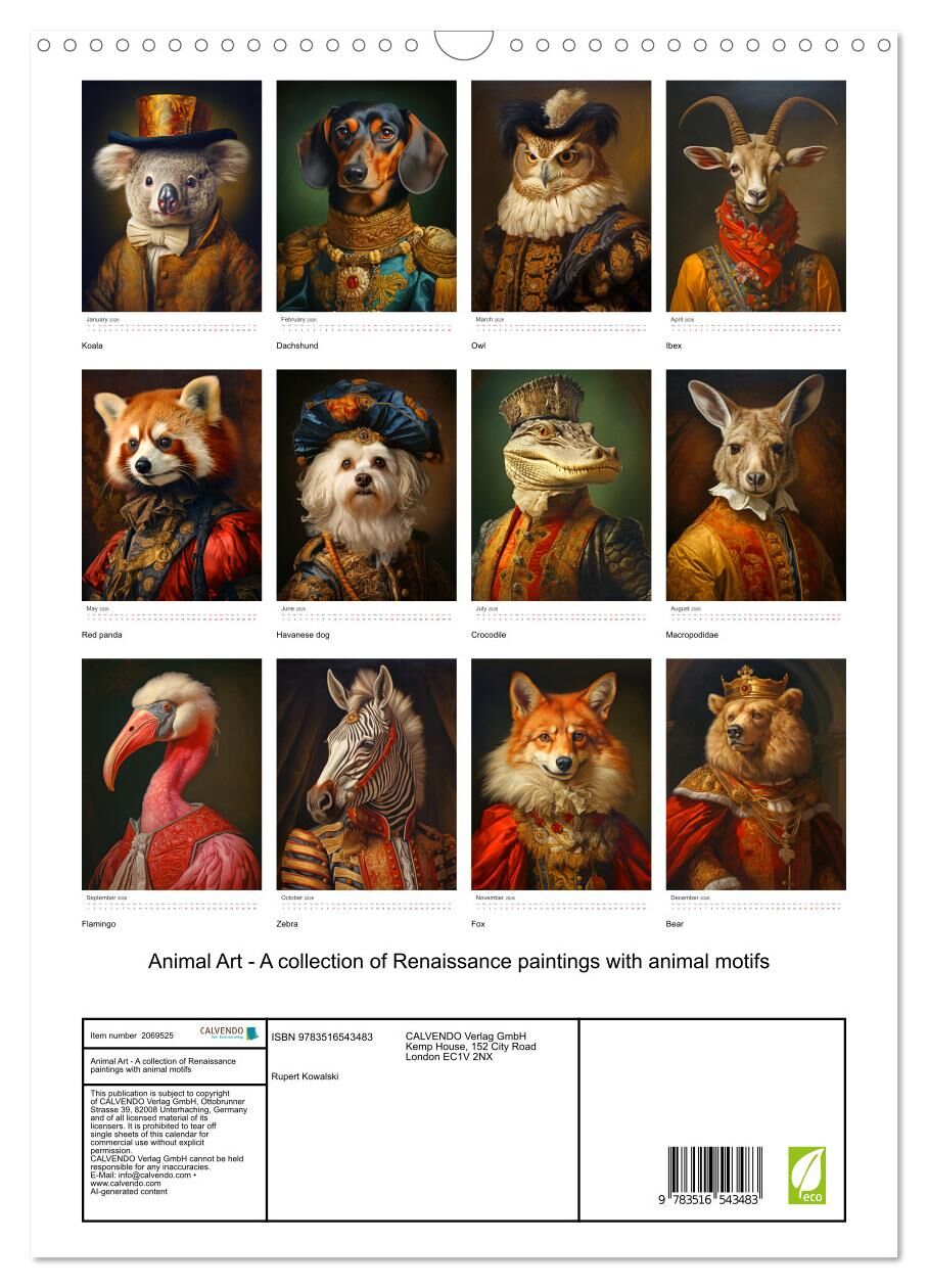 You love art and animals. Then discover the beauty and grace of animal art with our wall calendar. Animal Art is a unique collection of Renaissance paintings that show various animals in all their glory and diversity. Whether it is a majestic tiger, a playful ...