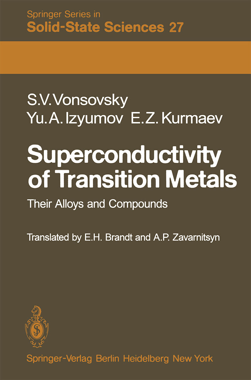 This book should fill a gap which has existed in the literature on supercon ductivity. There have been a number of excellent textbooks available on the phenomenon of superconductivity, which describe in detail the variety of ef fects connected with it and the ...This book should fill a gap which has existed in the literature on supercon ductivity. There have been a number of excellent textbooks available on the phenomenon of superconductivity, which describe in detail the variety of ef fects connected with it and the mathematical techniques to deal with them properly. However, until now there has not been a textbook available in English which concentrates on the mate~ial aspects of superconductivity. This is a major shortcoming since most physicists working in the field of superconduc tivity are mainly concerned with specific materials and subsequently often need to know more about the interplay of superconductivity and material prop erties. On the other hand, people working in the field know that a competent and well-written book by S. V. Vonsovsky, V. A. Izyumov, and E. Z. Kurmaev has been available in Russian. It presents a thorough discussion of superconducting transition-metal alloys and compounds. This volume is a translation of an updated version of the Russian edition. The translation was done by A. P. Zavarnitsyn of the authors' institution and by Dr. E. H. Brandt of the Max-Planck-Institut fur Metallforschung in Stuttgart. The master manuscript was ably typed by Mrs. C. Pendl. I would like to take this opportunity to thank each of them. I sincerely hope that the book will turn out to be useful to physicists working in the field of superconductivity as well as to nonspecialists and interested graduate students.