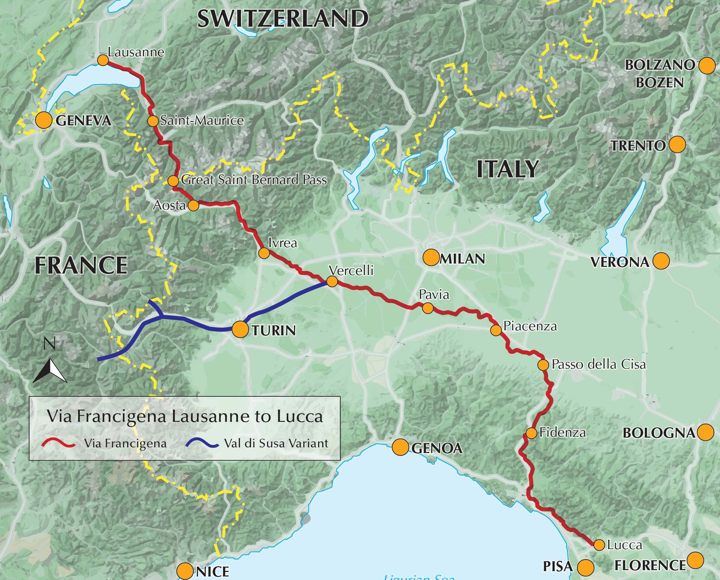 A guidebook to walking the 2000km Via Francigena pilgrimage route from Canterbury to Rome. Part of a three-volume set, this volume covers the middle 726km, from Lausanne, Switzerland, to Lucca, Italy. Suitable for most abilities although the crossing of the J...