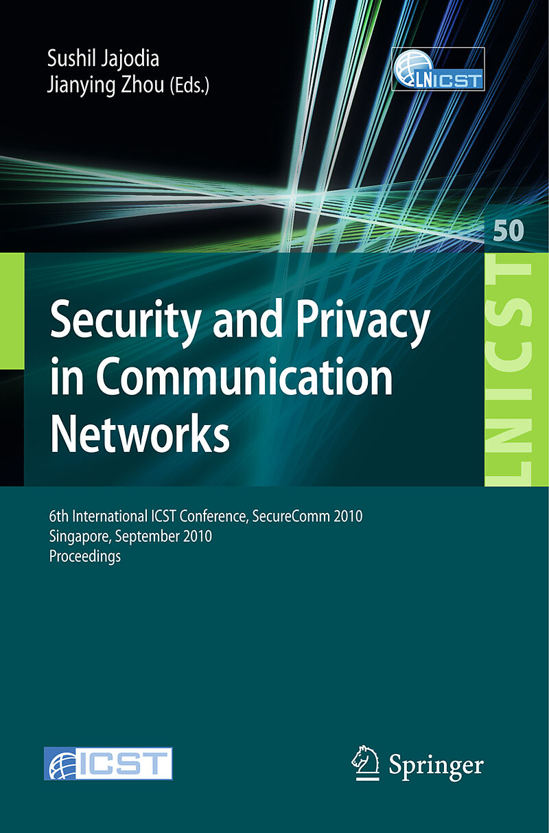 These proceedings contain the papers selected for presentation at the 6th - ternational Conference on Security and Privacy in Communication Networks - SecureComm 2010 - held on September 7 9, 2010 in Singapore. In response to the call for papers, 112 papers we...These proceedings contain the papers selected for presentation at the 6th - ternational Conference on Security and Privacy in Communication Networks - SecureComm 2010 - held on September 7 9, 2010 in Singapore. In response to the call for papers, 112 papers were submitted to the conf- ence. These papers were evaluated on the basis of their signi?cance, novelty,and technical quality. Each paper was reviewed by at least three members of the program committee. The program committee meeting was held electronically, with intensive discussions over a period of two weeks. Finally, 28 papers were selected for presentation at the conference, giving an acceptance rate of 25%. There is a long list of people who volunteered their time and energy to put together the symposium and who deserve acknowledgment. Success of any c- ference depends on the quality of the selected papers. We are grateful to the membersoftheprogramcommitteeandexternalreviewersforalltheirhardwork during the review and the selection process. Feng Bao, SecureComm 2010 G- eral Chair, deserves our special thanks for his support and suggestions. Thanks are due also to our keynote speakers, Pierangela Samarati and Robert H. Deng, and to Ying Qiu for managing the submission/review system and the conf- ence website. Last, but certainly not least, our thanks go to all the authors who submitted papers and all the attendees. We hope that you will ?nd the contributions stimulating and a source of inspiration for future research.