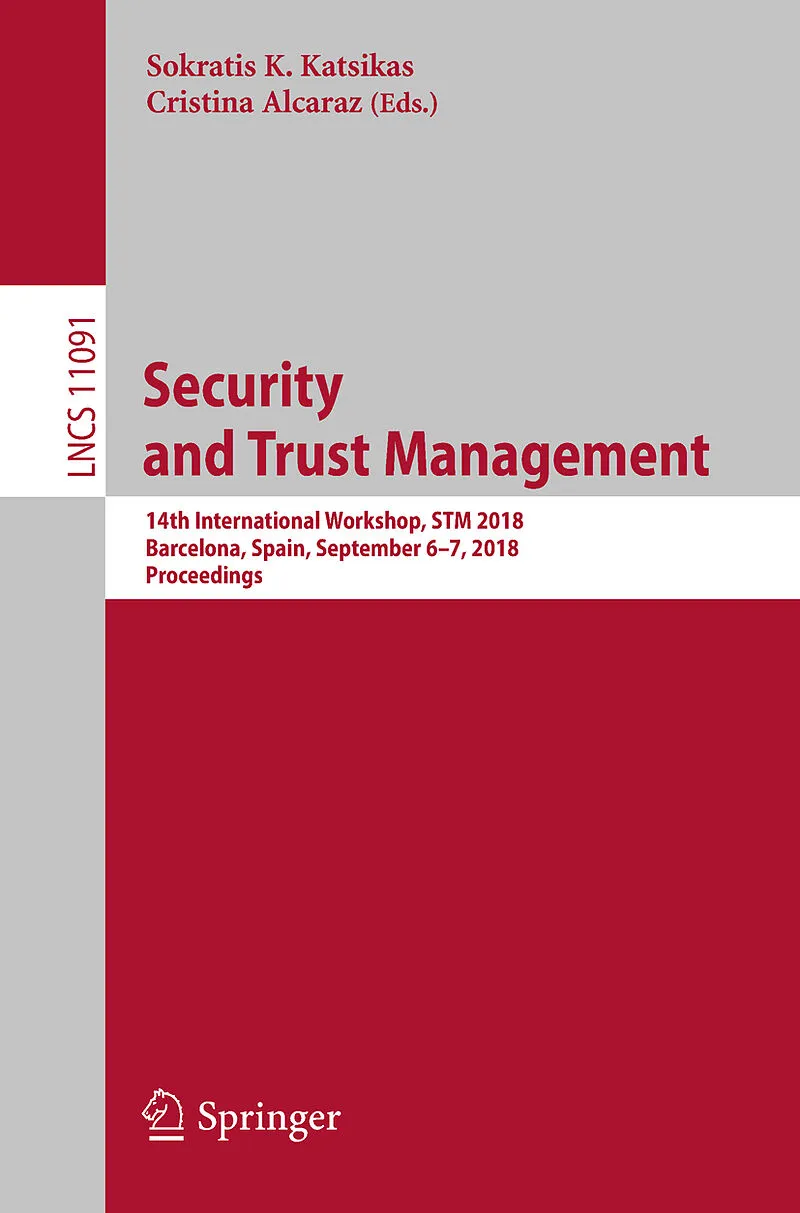 This book constitutes the proceedings of the 14th International Workshop on Security and Trust Management, STM 2018, held in Barcelona, Spain, in September 2018, and co-located with the 23rd European Symposium Research in Computer Security, ESORICS 2018. The 8...