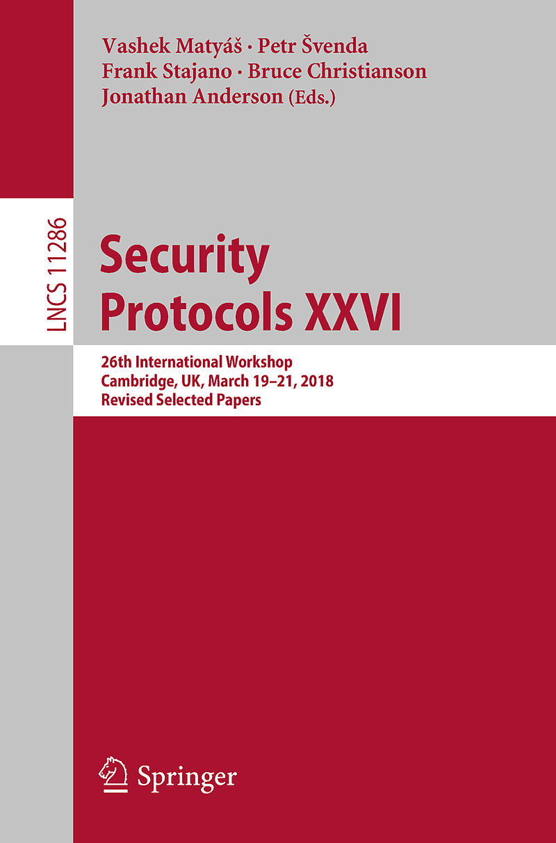 This book constitutes the thoroughly refereed post-workshop proceedings of the 26th International Workshop on Security Protocols, held in Cambridge, UK, in March 2018. The volume consists of 17 thoroughly revised invited papers presented together with the res...