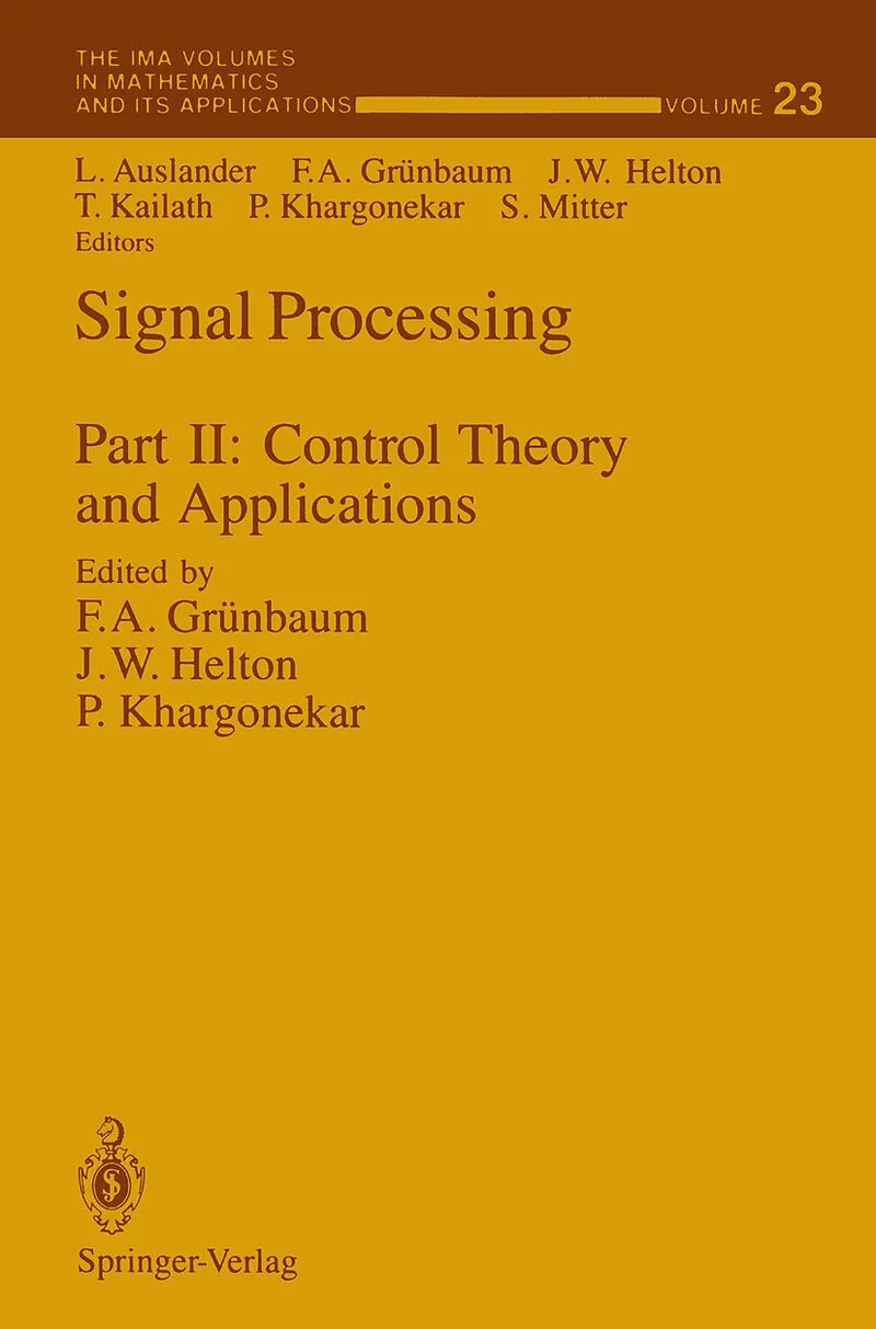 The two volumes of Signal Processing are based on lectures delivered during a six week program held at the IMA from June 27 to August 5, 1988. The first two weeks of the program dealt with general areas and methods of Signal Pro cessing. The problem areas incl...