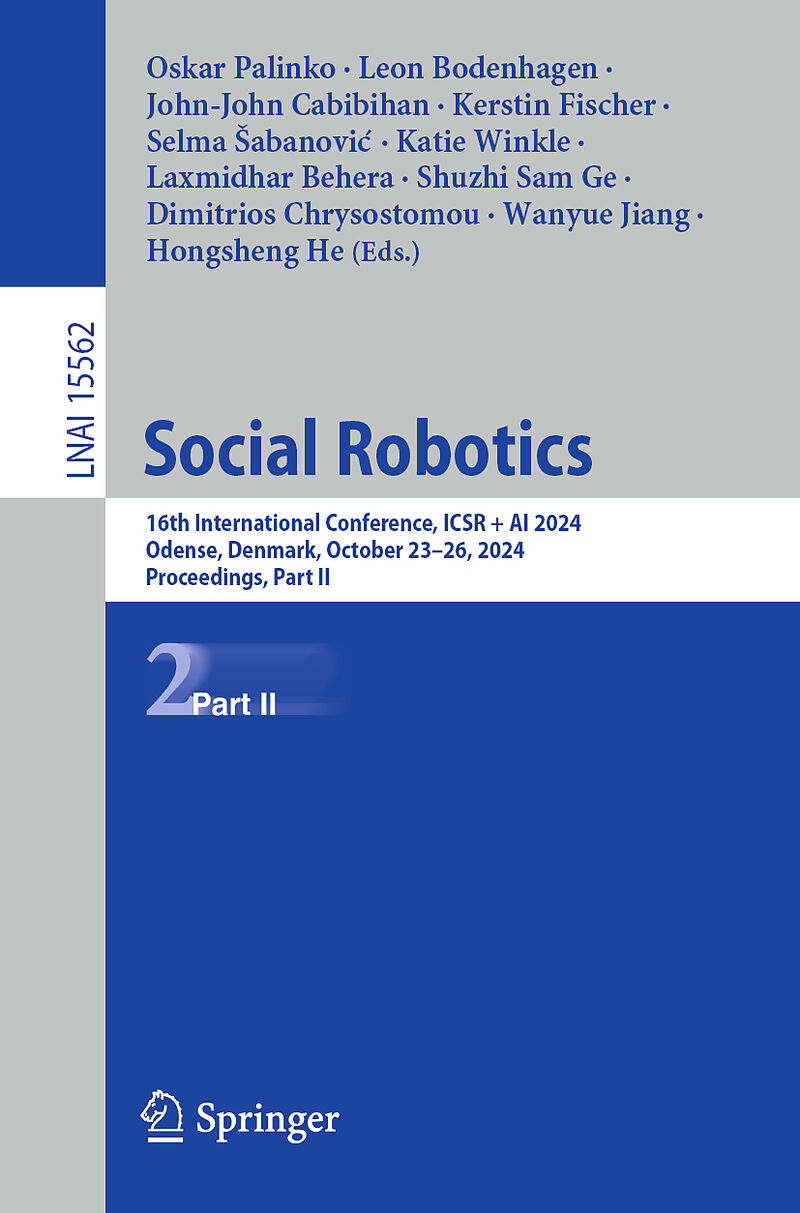 The 3-volume set LNAI 15561-15563 constitutes the refereed proceedings of the 16th International Conference on Social Robotics, ICSR + AI 2024, held in Odense, Denmark, during October 2326, 2024. The 109 full papers and 19 short papers included in the proceed...The 3-volume set LNAI 15561-15563 constitutes the refereed proceedings of the 16th International Conference on Social Robotics, ICSR + AI 2024, held in Odense, Denmark, during October 2326, 2024.