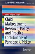 The brief provides an overview of Dr. Penelope K. Trickett s work and explores her innovations in the areas of theory, measurement, and methodology in the study of child maltreatment. It offers a summary of Dr. Trickett s seminal longitudinal studies on child maltreatment, including their influence on understanding the impact of sexual abuse and child maltreatment on female and adolescent development. Chapters examine the impact of her work on policy and practice and offer present four new empirical studies that have been directly influenced by Dr. Trickett s contributions. The brief concludes with further research recommendations to bridge the current policy and practice gaps. Topics featured in this brief include:Childhood sexual abuse and its effect on eating disorder development in females. The traumatic nature of reporting maltreatment in adolescents. Associations between adolescents community violence exposure (CVE) and the development of aggressive behavior problems. Child sexual abuse experiences in Korea. Child Maltreatment Research, Policy, and Practice is a must-have resource for policy makers and related professionals, graduate students, and researchers in child and school psychology, family studies, public health, social work, law/criminal justice, and sociology.