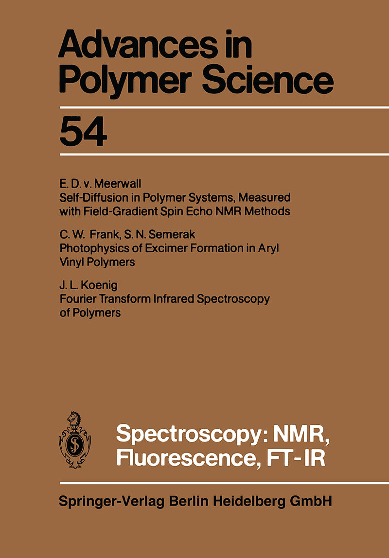 Self-diffusion in polymer systems, measured with field-gradient spin echo NMR methods.- Photophysics of excimer formation in aryl vinyl polymers.- Fourier transform infrared spectroscopy of polymers.