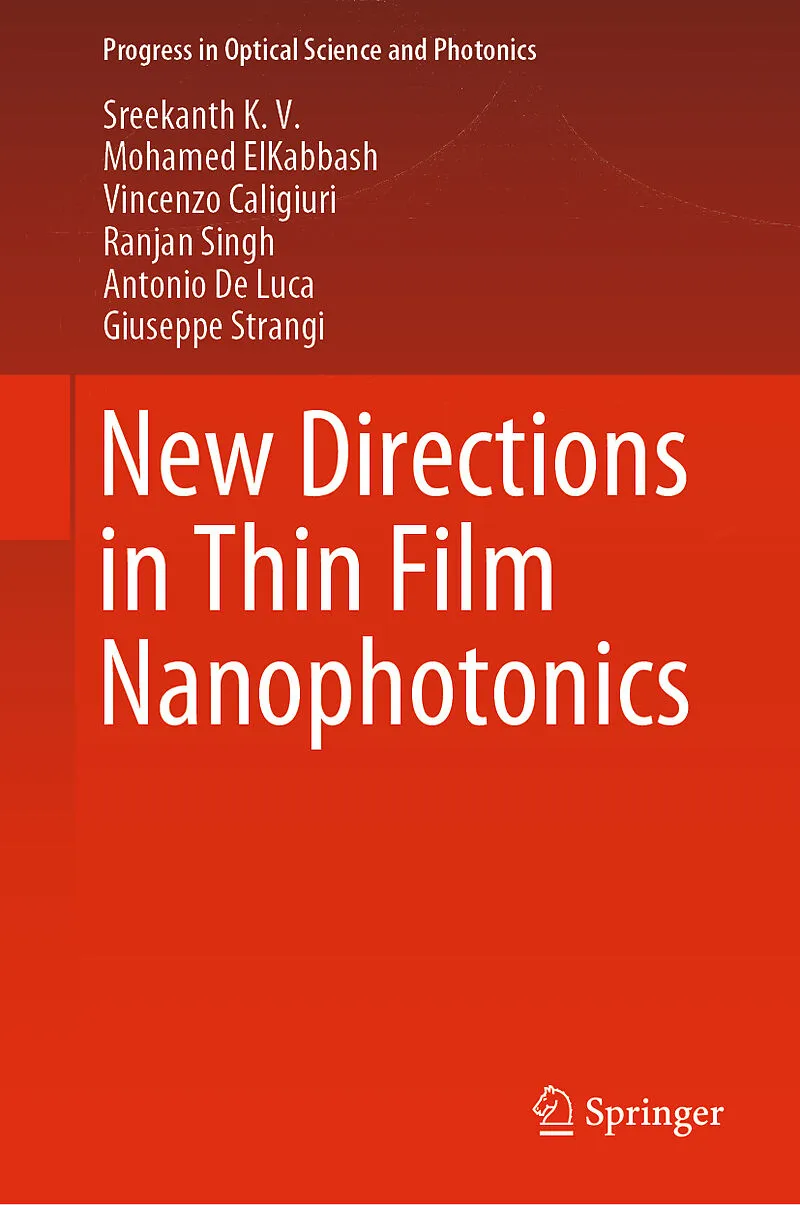 Dr. Sreekanth K.V. received his PhD degree in photonics from Nanyang Technological University, Singapore. He then worked as a Postdoctoral researcher for three years at the department of Physics, Case Western Reserve University, USA and one year at the Engineering Product Development department, Singapore University of Technology and Design (SUTD), Singapore. He is also serving as an Editorial Board member for Scientific Reports, a journal by Nature publishing group. He is currently working as a Project Leader at the Centre for Disruptive Photonic Technologies (CDPT), Nanyang Technological University.Dr. Mohamed ElKabbash obtained his bachelors in Law and Master in Law from Alexandria University, Egypt. He then obtained a B. A. in physics and economics from Illinois Wesleyan University, IL, USA, and PhD in physics from Case Western Reserve University, Cleveland, OH, USA. He is currently a postdoctoral associate at the high intensity femtosecond laser lab, the institute of optics, University of Rochester, NY, USA.Dr. Vincenzo Caligiuri received his Master Degree in Electronic Engineering in 2013 at the University of Calabria. In 2017 he received his Ph.D. in Physics and Material Science at the University of Calabria, in collaboration with the Nanoplasm laboratory of Case Western Reserve University, Technical University of Denmark (DTU) and CNR Nanotech. At the moment, he is working as a Post-Doc at the Nanochemistry Department of the Italian Institute of Technology.Prof. Ranjan Singh is an Assistant Professor at the School of Physical and Mathematical Sciences, Nanyang Technological University, Singapore. He received his M. S. degree in Optoelectronics and Laser Technology from Cochin University of Science and Technology, India and PhD in photonics from Oklahoma State University, USA. Before joining NTU, he was a postdoctoral research associate at the Los Alamos National Laboratory, USA. Prof. Antonio De Luca is an Associate Professor of Applied Physics at University of Calabria. He is affiliated to INSTM, the National Consortium on the Materials Science and Technology and Co-Chair of the scientific initiative From Life to Life National Academy of Lincei. He is the President of the Associazione NanoPlasm that is involved to the promotion of research activities in Plasmonics and Nano-Photonics. He is also affiliated with CNR-National Research Council, Nanotec Institute Italy. He completed his PhD at University of Calabria.Prof. Giuseppe Strangi is Professor of Physics and General Medical Sciences at Case Western Reserve University, USA. He also holds an endowed chair professorships as Ohio Research Scholar in Surfaces of Advanced Materials at CWRU. He is senior scientist of the National Research Council (CNR- Italy). Strangi is the President of the Scientific Committee of the Foundation Con il Cuore, a national foundation that supports cancer research in Europe and he is the General Chair of the International Conference NANOPLASM New Frontiers in Plasmonics and Nanophotonics. He is fellow of The Institute of Science of the Origins and of the Case Comprehensive Cancer Center (CWRU), Senior Member of Optical Society of America and American Physical Society.